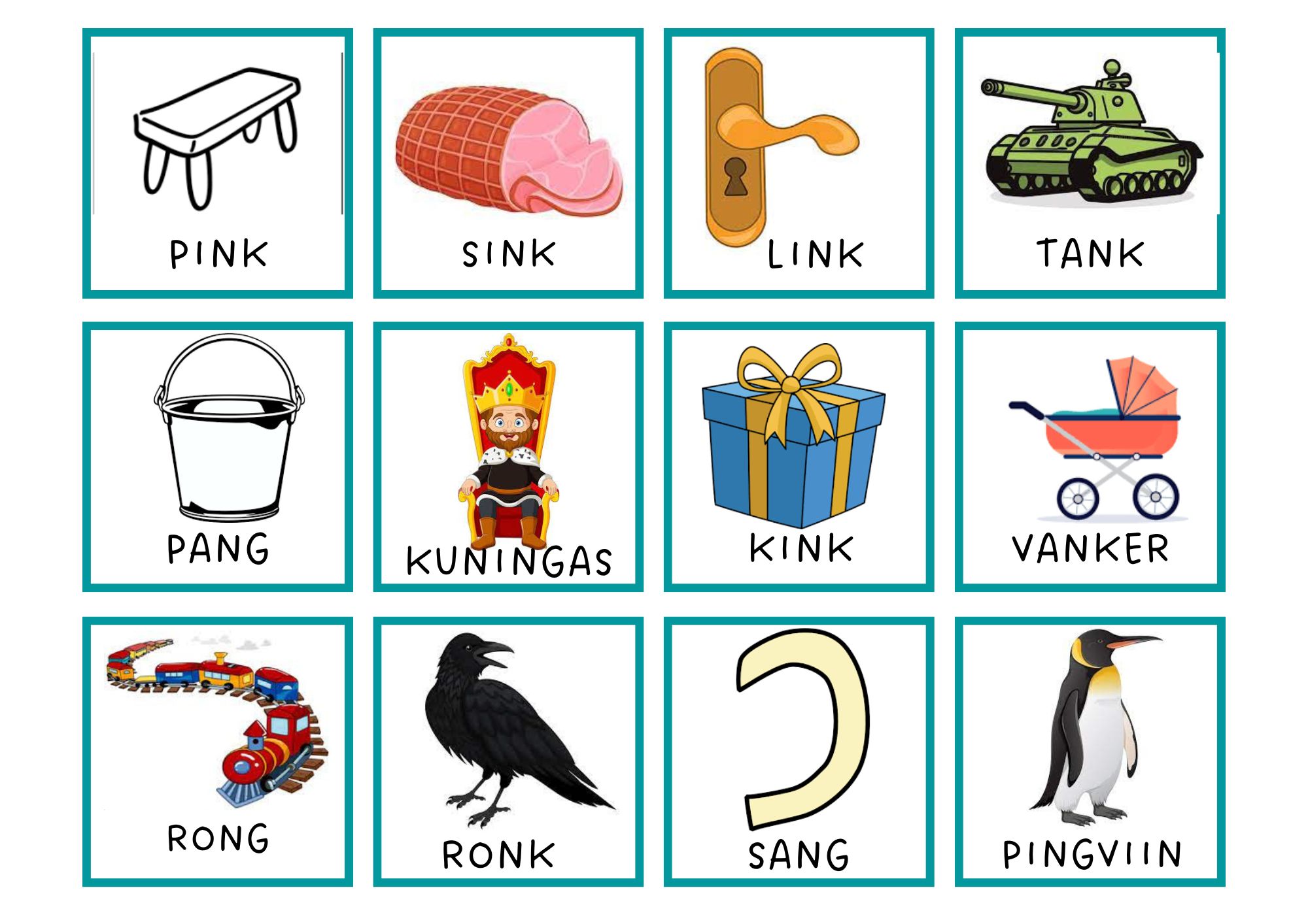 Memoriin NK/NG häälikuühendi hääldamise harjutamiseks.