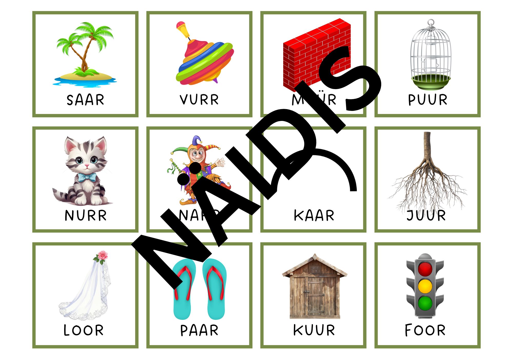 Memoriin R-hääliku hääldamise harjutamiseks ühesilbilise sõna lõpus.