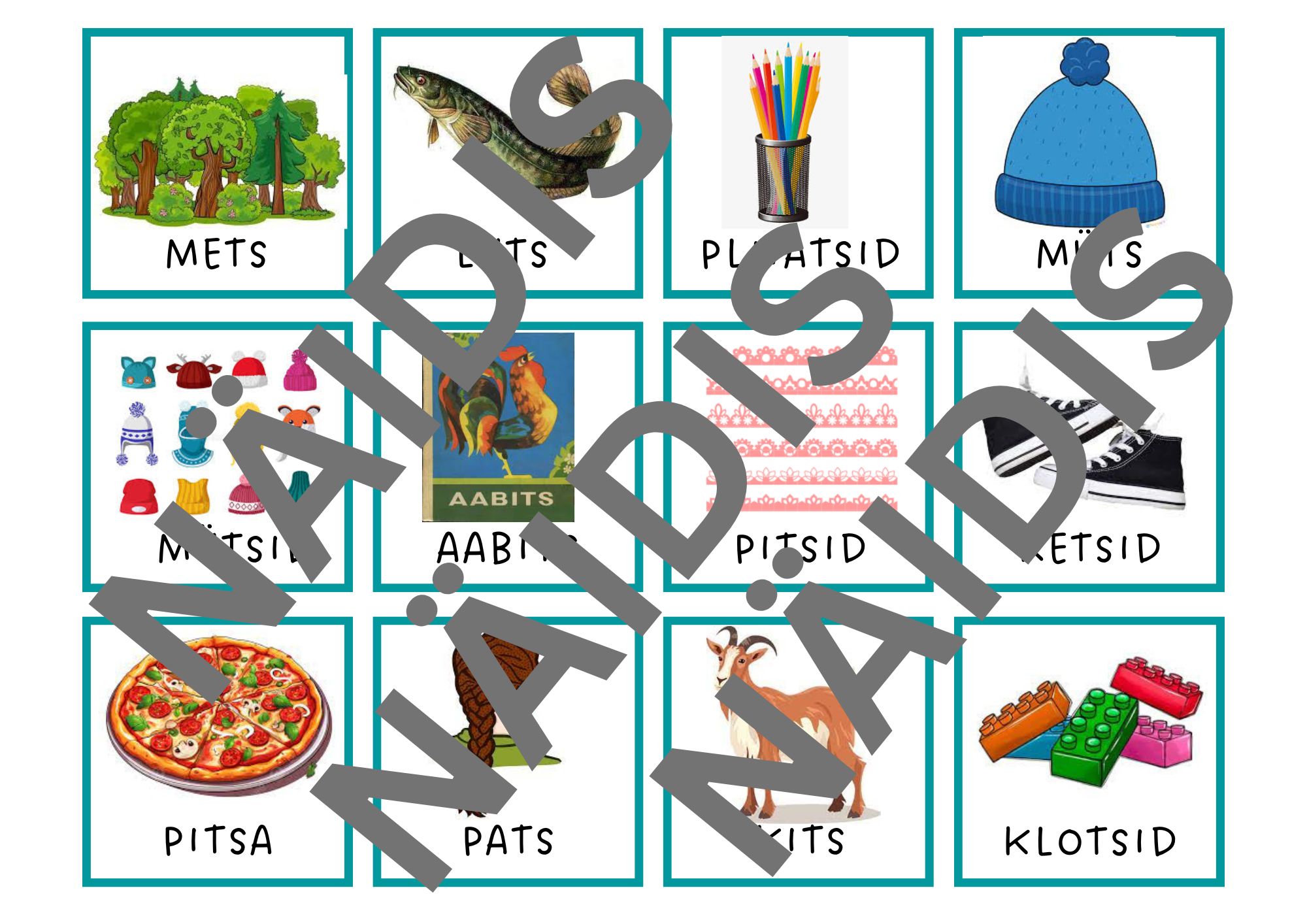 Memoriinid TS ja ST häälikuühendite hääldamise harjutamiseks. Kummaski memoriinis on 12 paari.