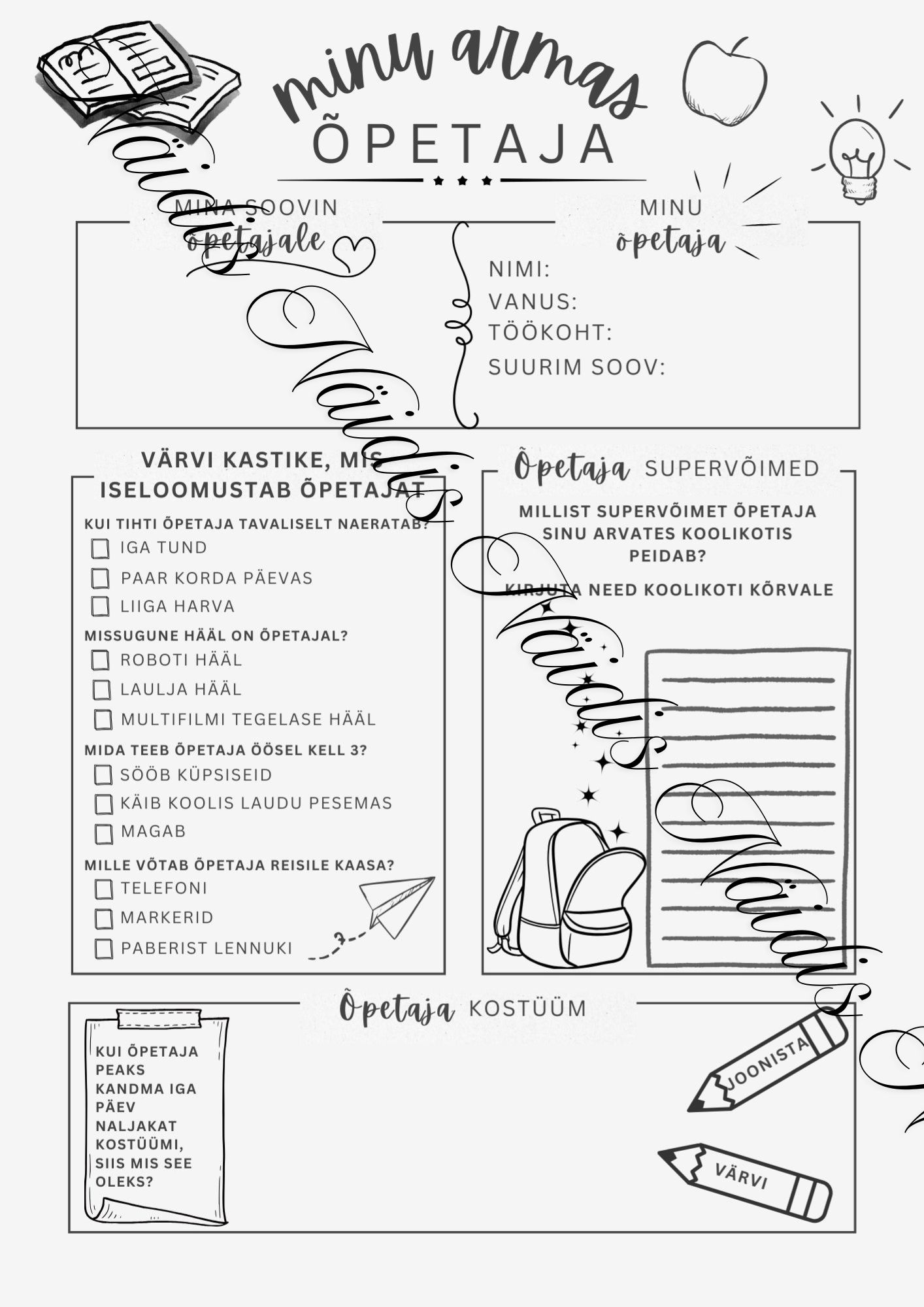 Minu armas õpetaja – tööleht õpetajate päevaks