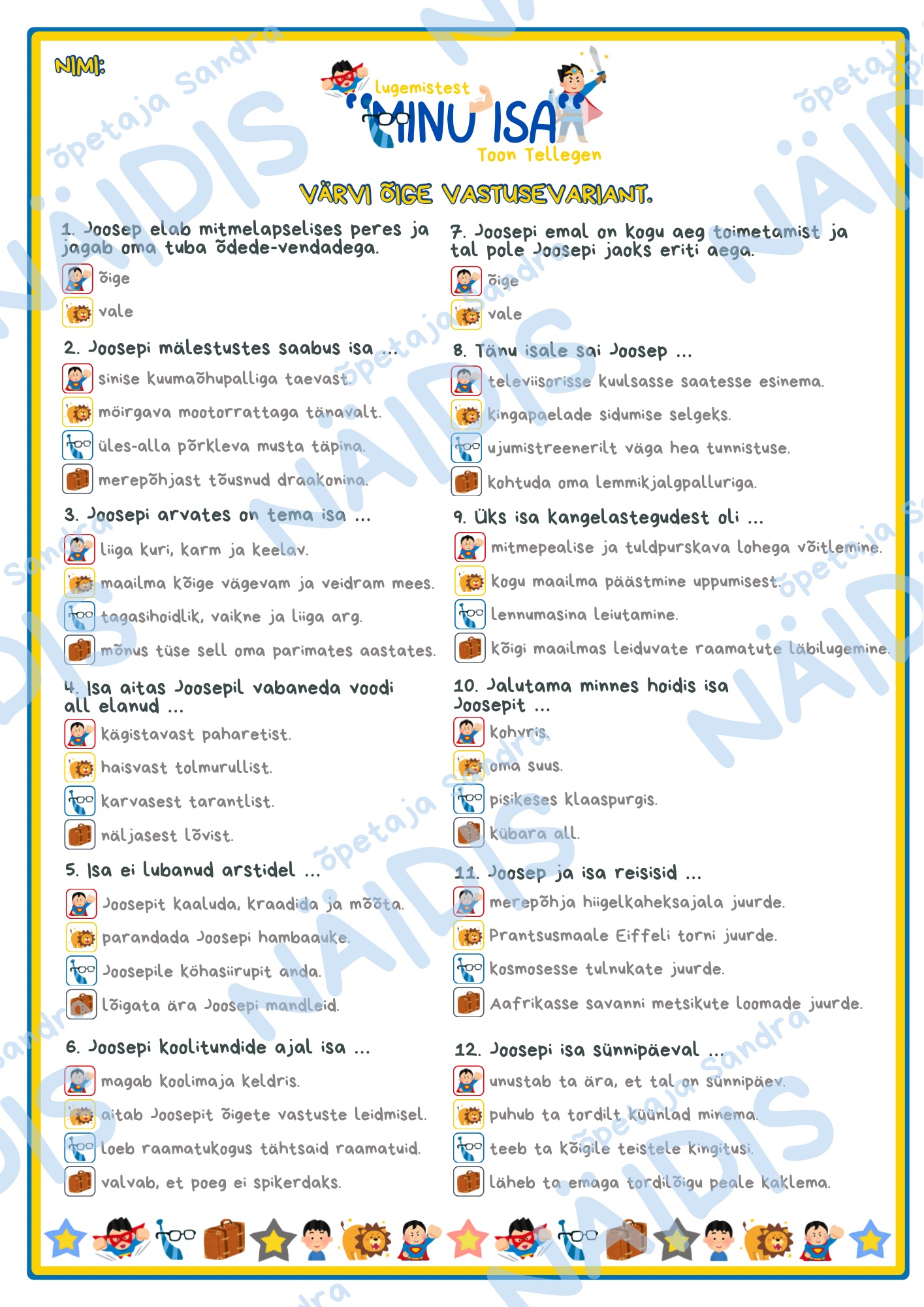 🦸🏻♂️ Hollandi kirjaniku Toon Tellegeni raamatu “Minu isa” (4. klassi soovituslik kirjandus) põhjal koostatud lugemistest-töölehed nii liikudes kui koolipingis täitmiseks.
