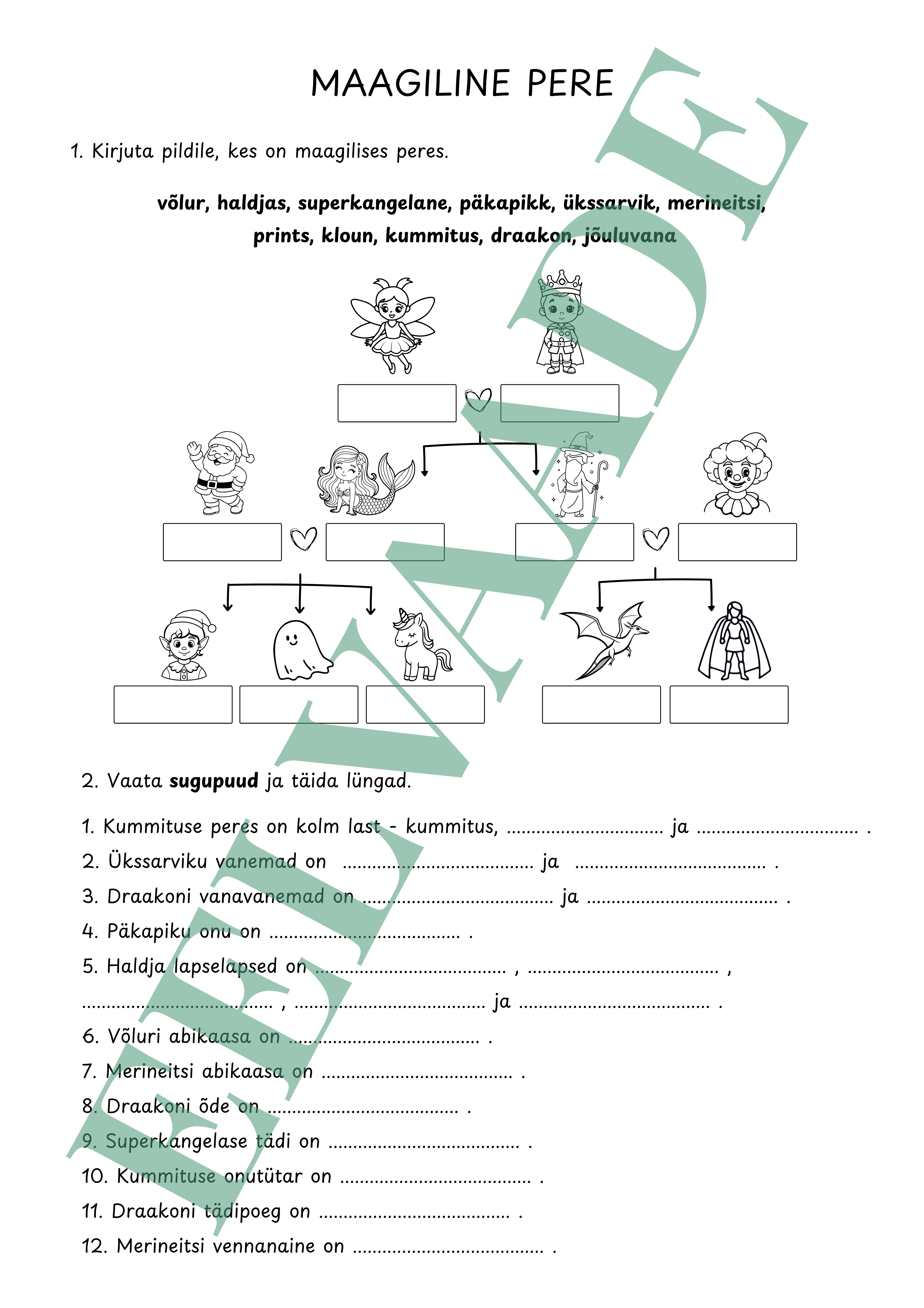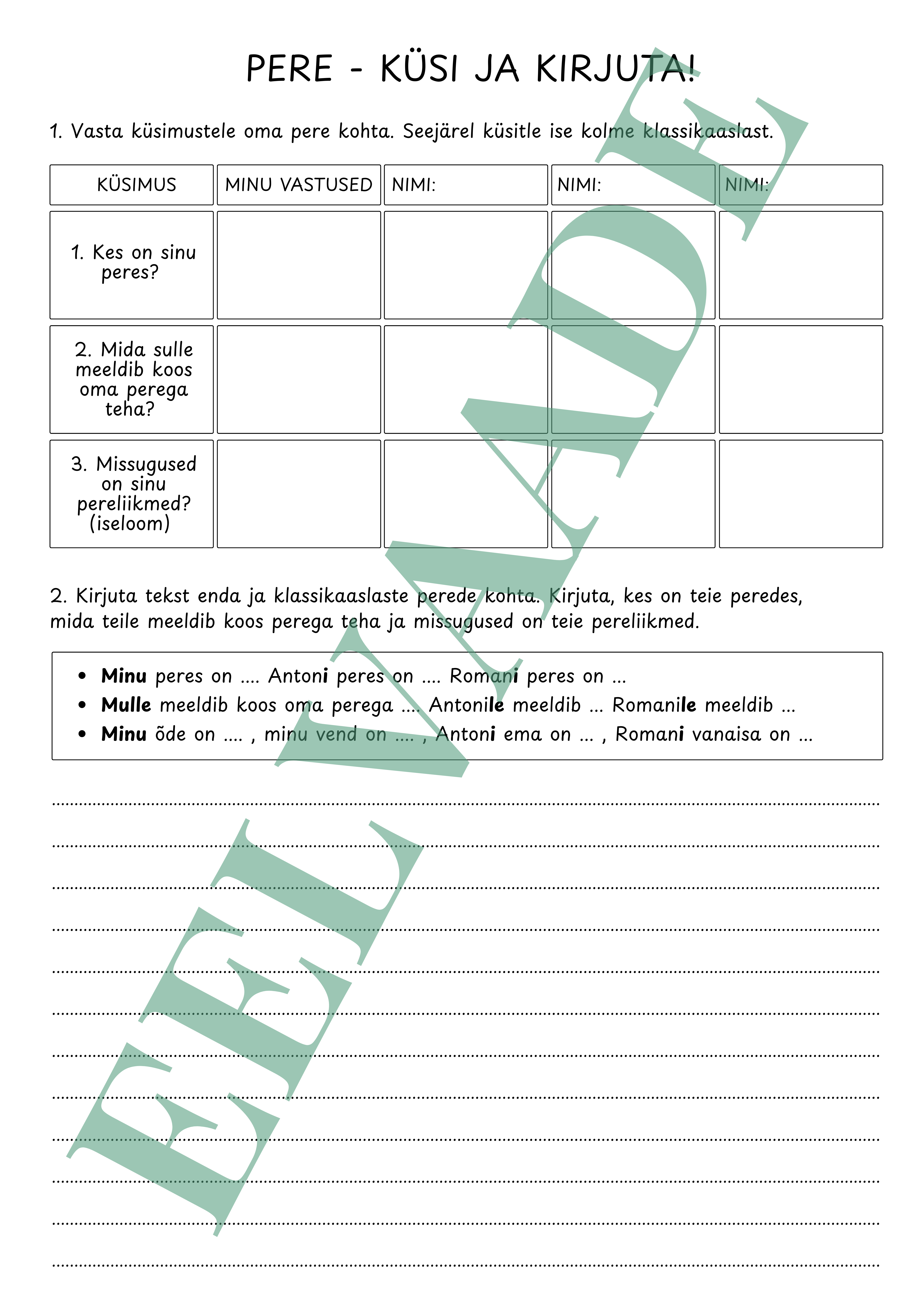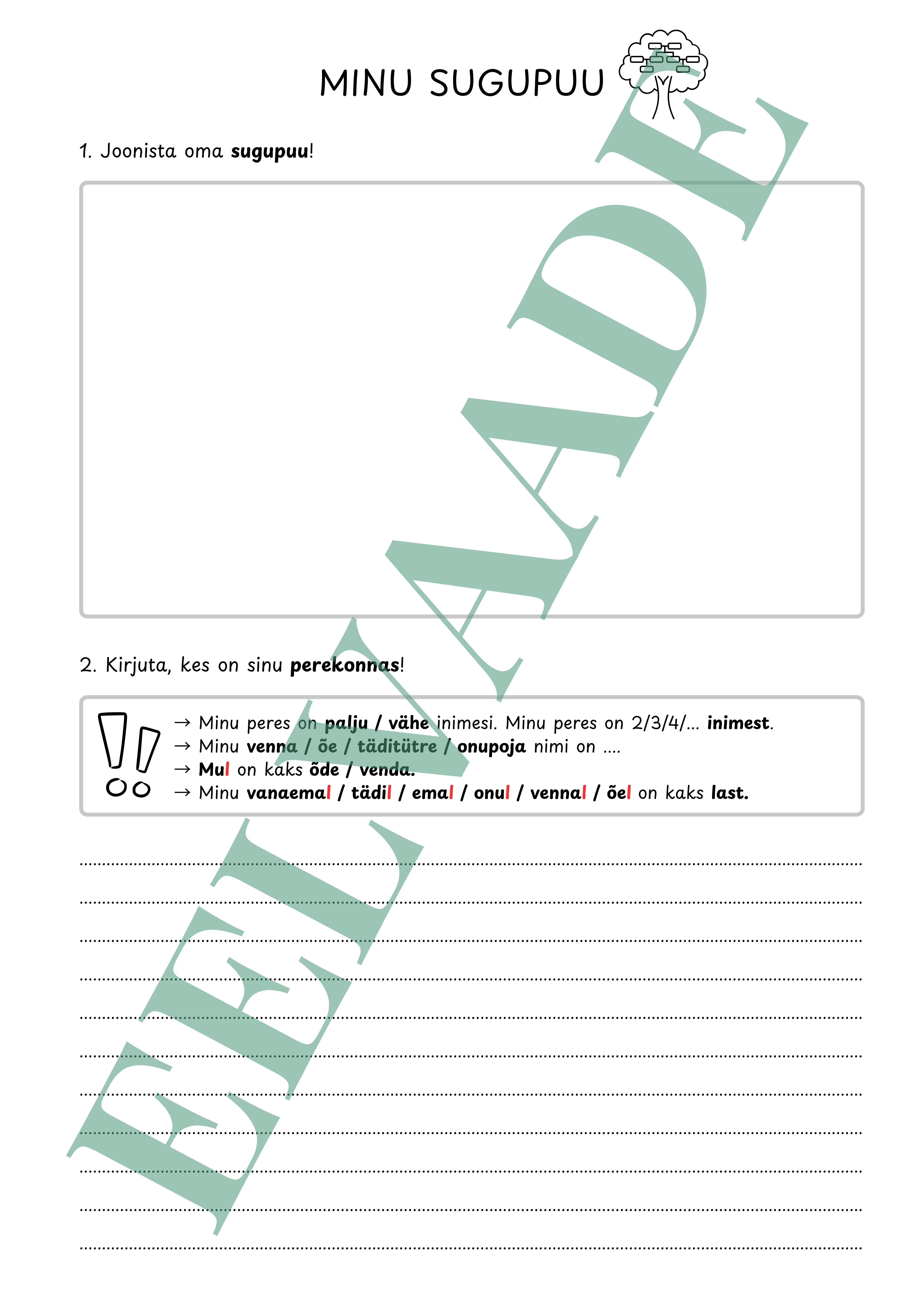 “MINU PERE JA SUGULASED – töölehtede komplekt (22 lk)”