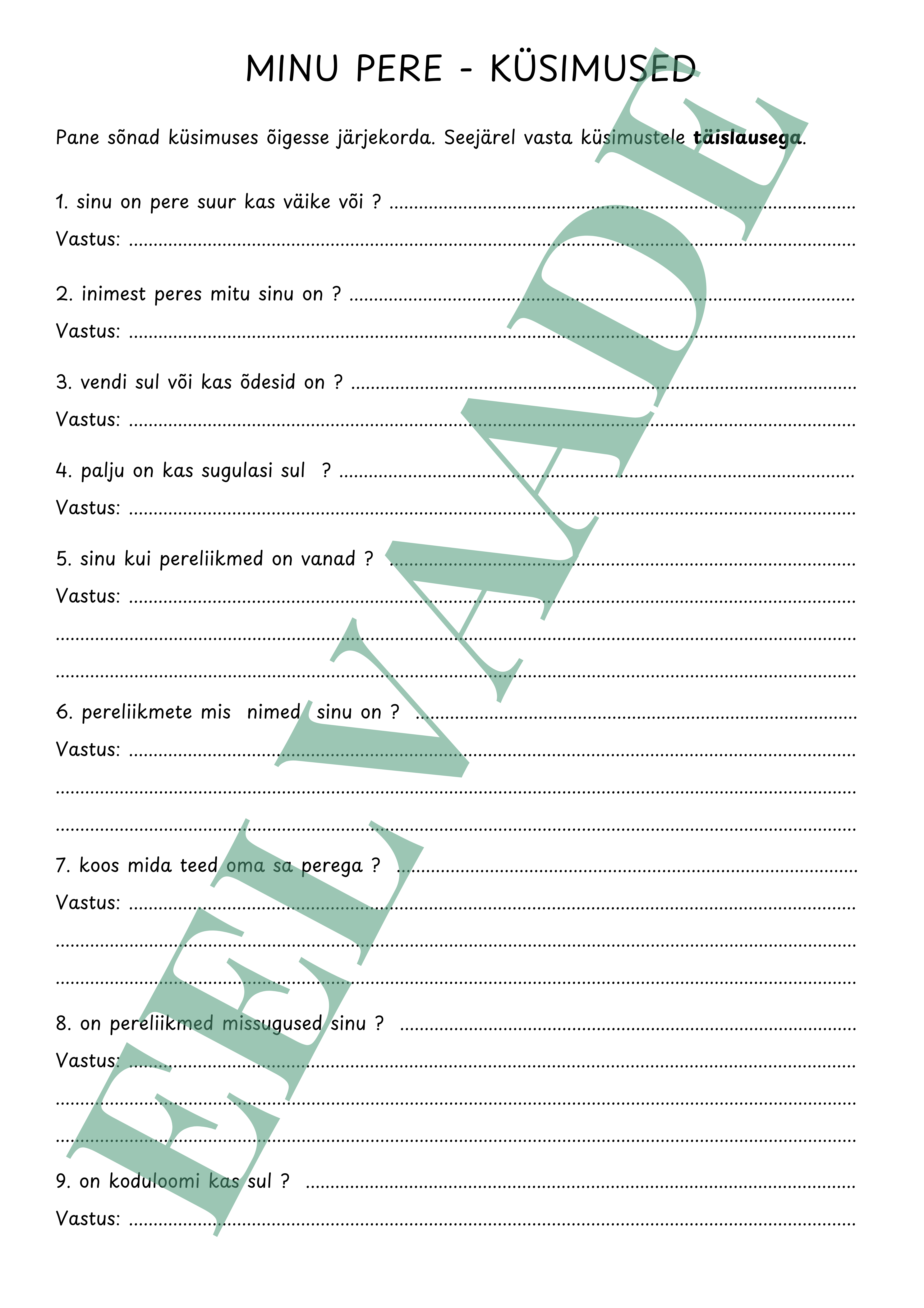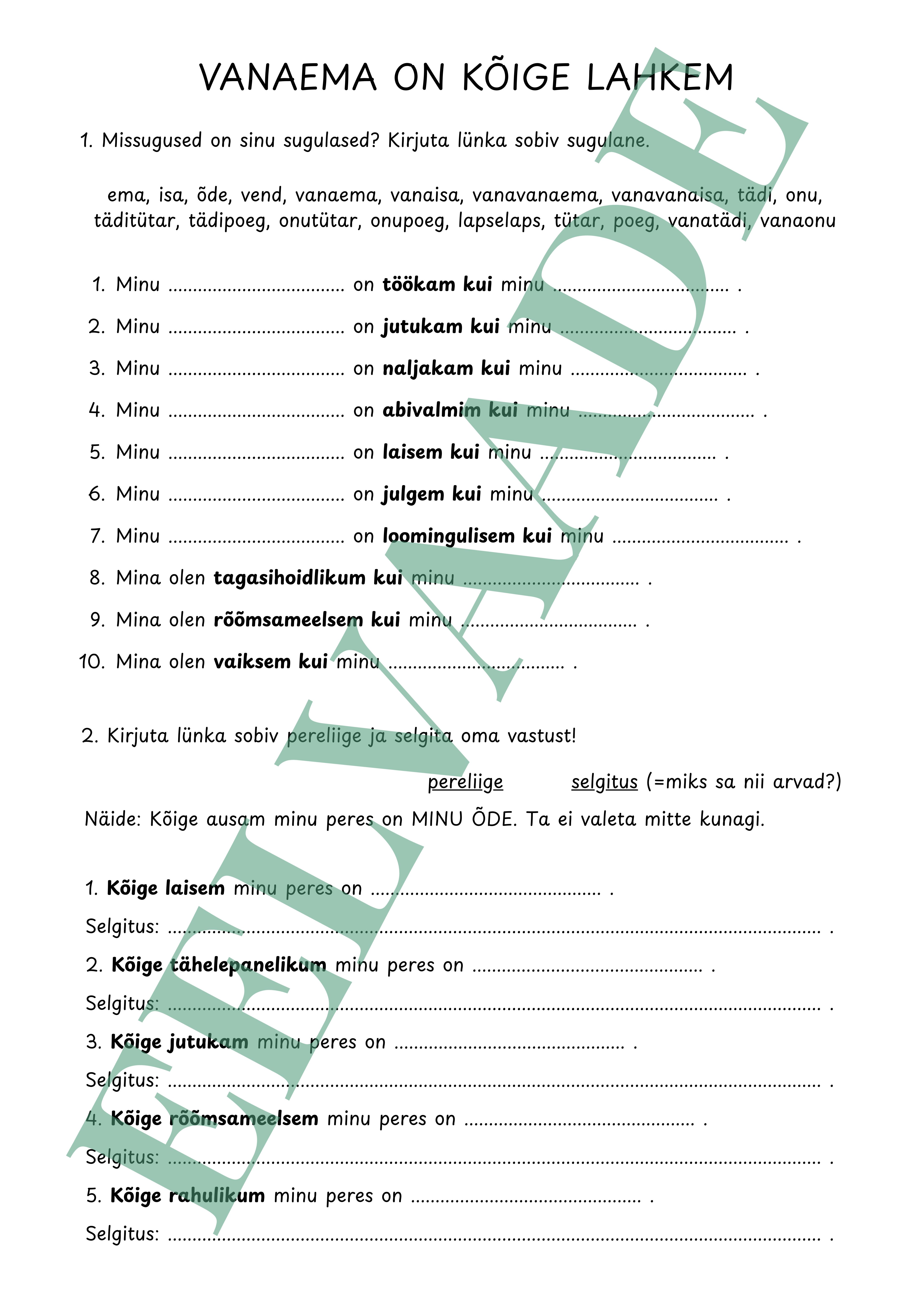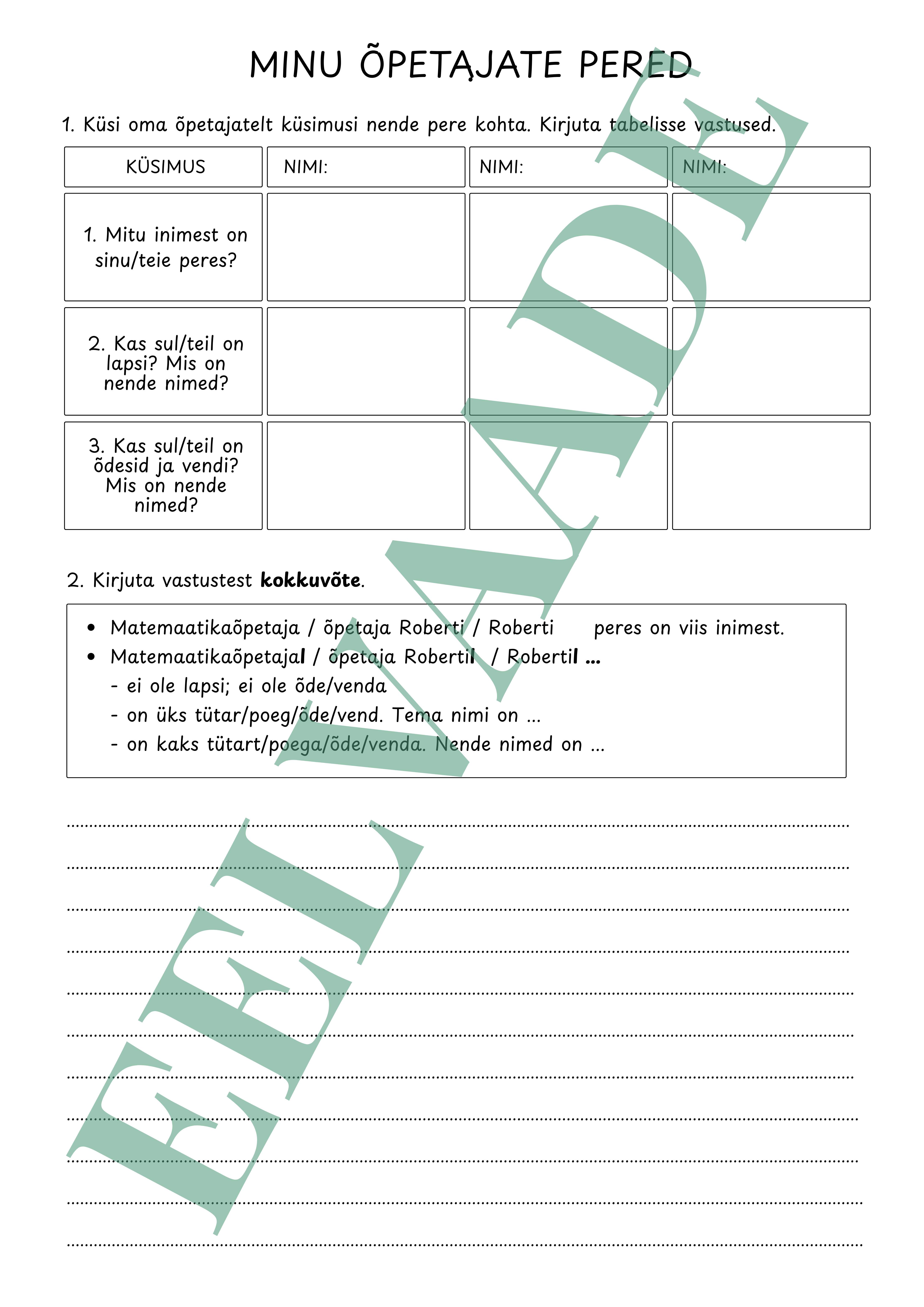 “MINU PERE JA SUGULASED – töölehtede komplekt (22 lk)”