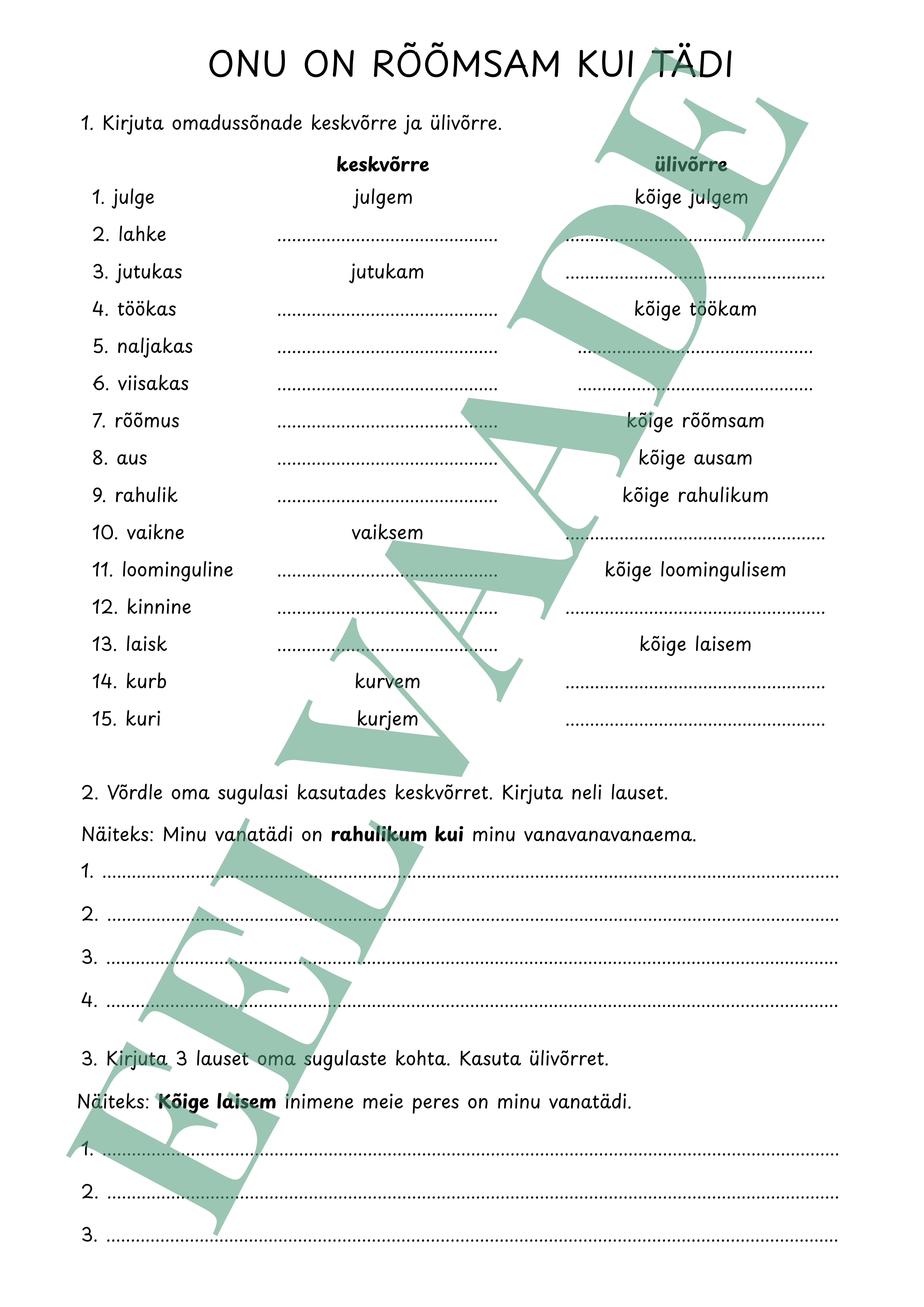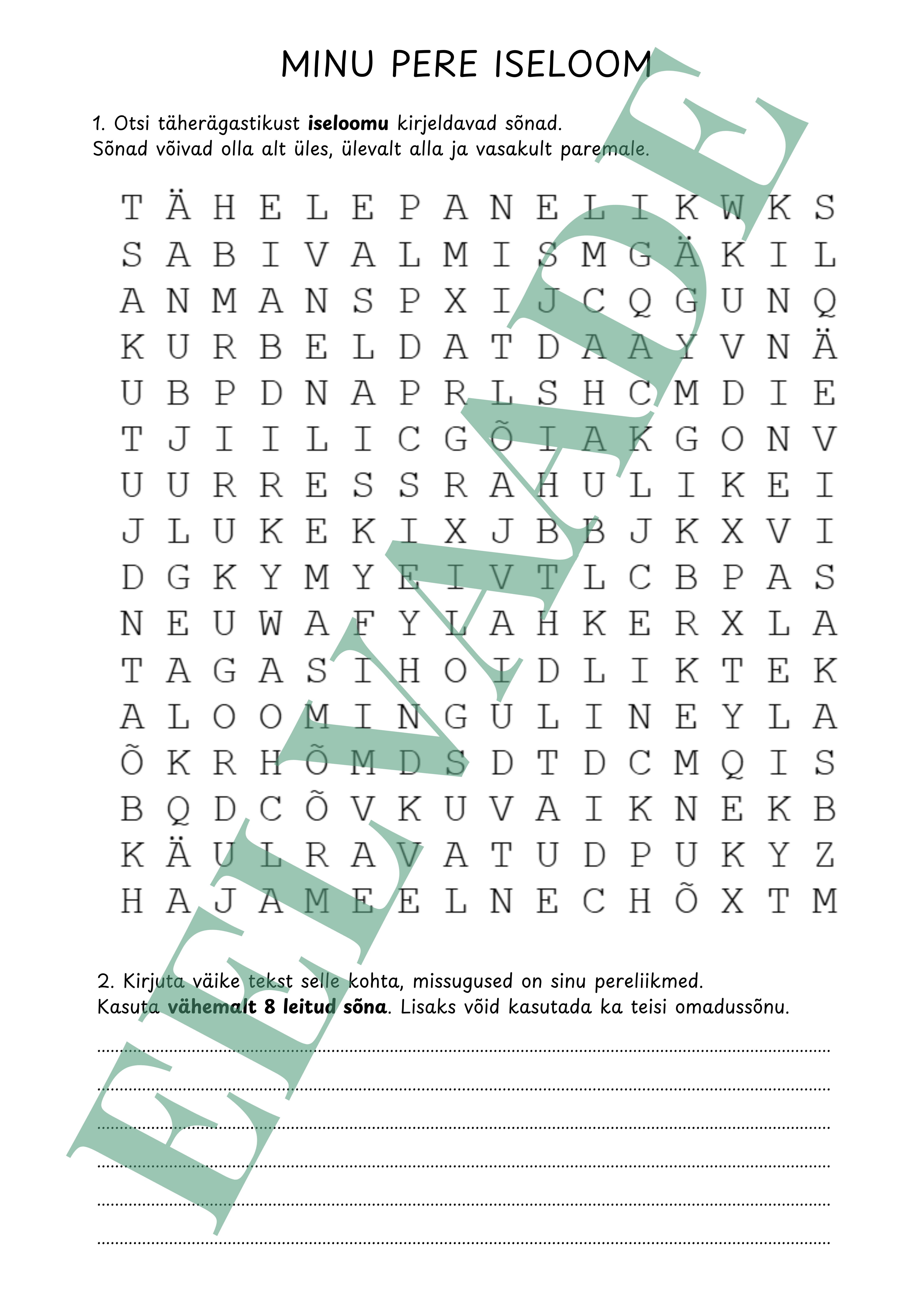 Materjal on LAK-sõbralik. Kõik töölehed on eelvaatest nähtavad ja neid on võimalik osta ka üksikult.