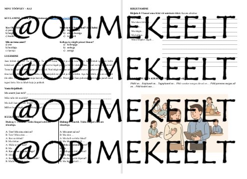 Nelja osaoskust arendav tööleht. A1.2 ja algelise A2 tasemele.