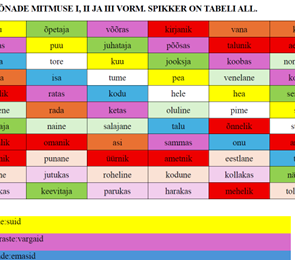 H1: 1. TEE SÕNADE MITMUSE I, II JA III VORM. SPIKKER ON TABELI ALL.