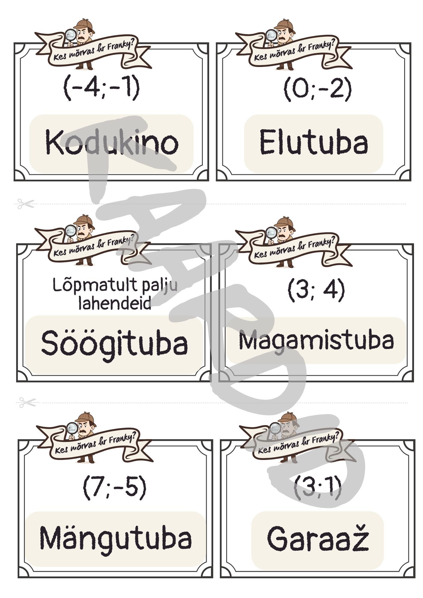 - lahenditega KAARDID (23 tk), lahendid esitatud kujul (x;y);
