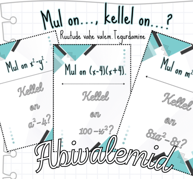 - “Mul on…, kellel on…?” mäng ruutude vahe valemi, kaksliikme ruudu valemite ja tegurdamise harjutamiseks;