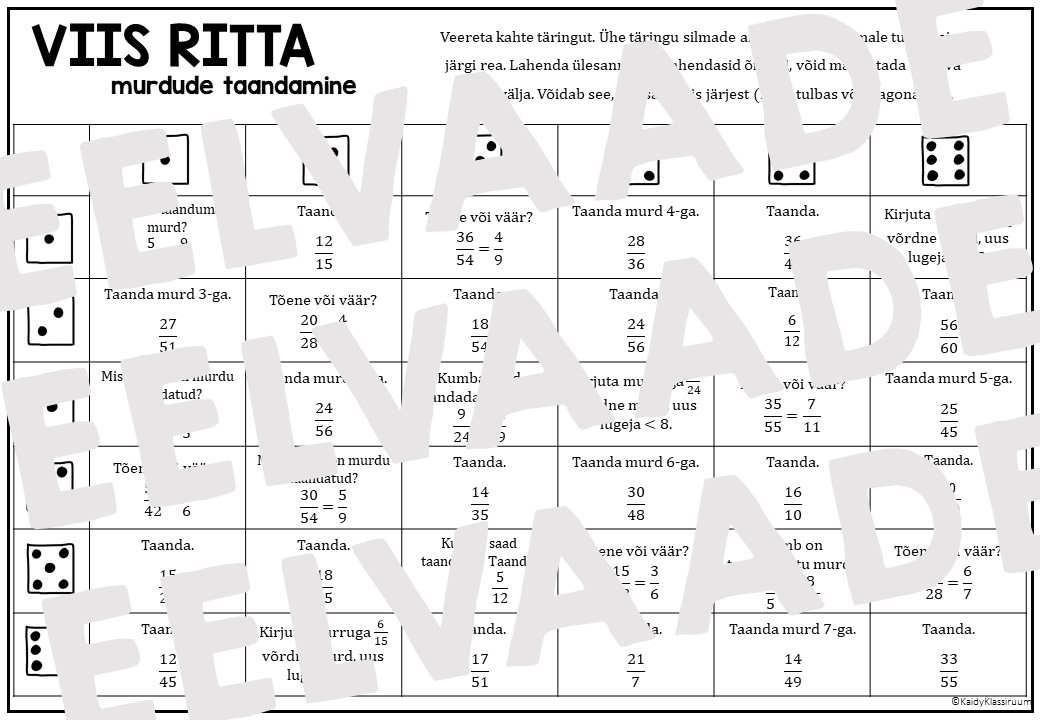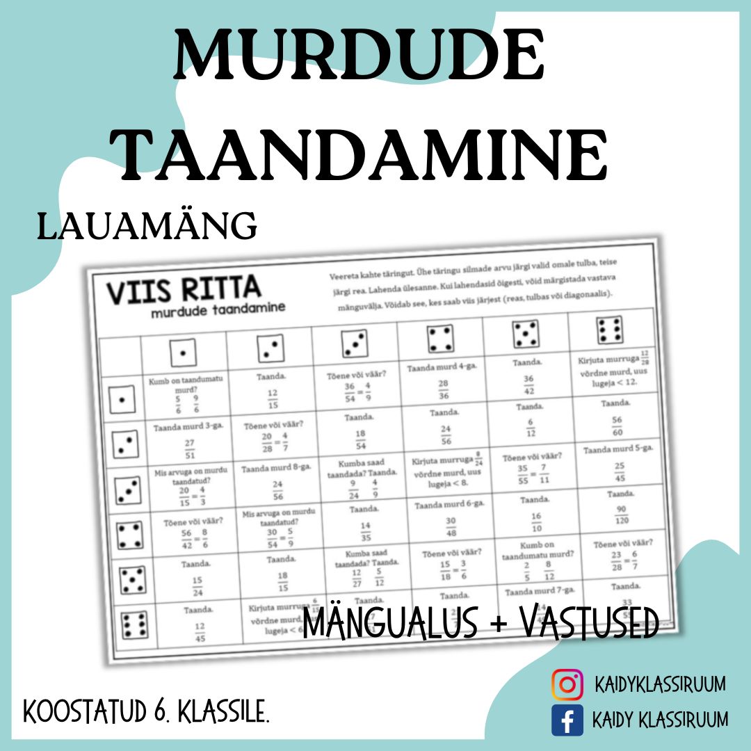 Murdude taandamise lauamäng. Koostatud 6. klassile.