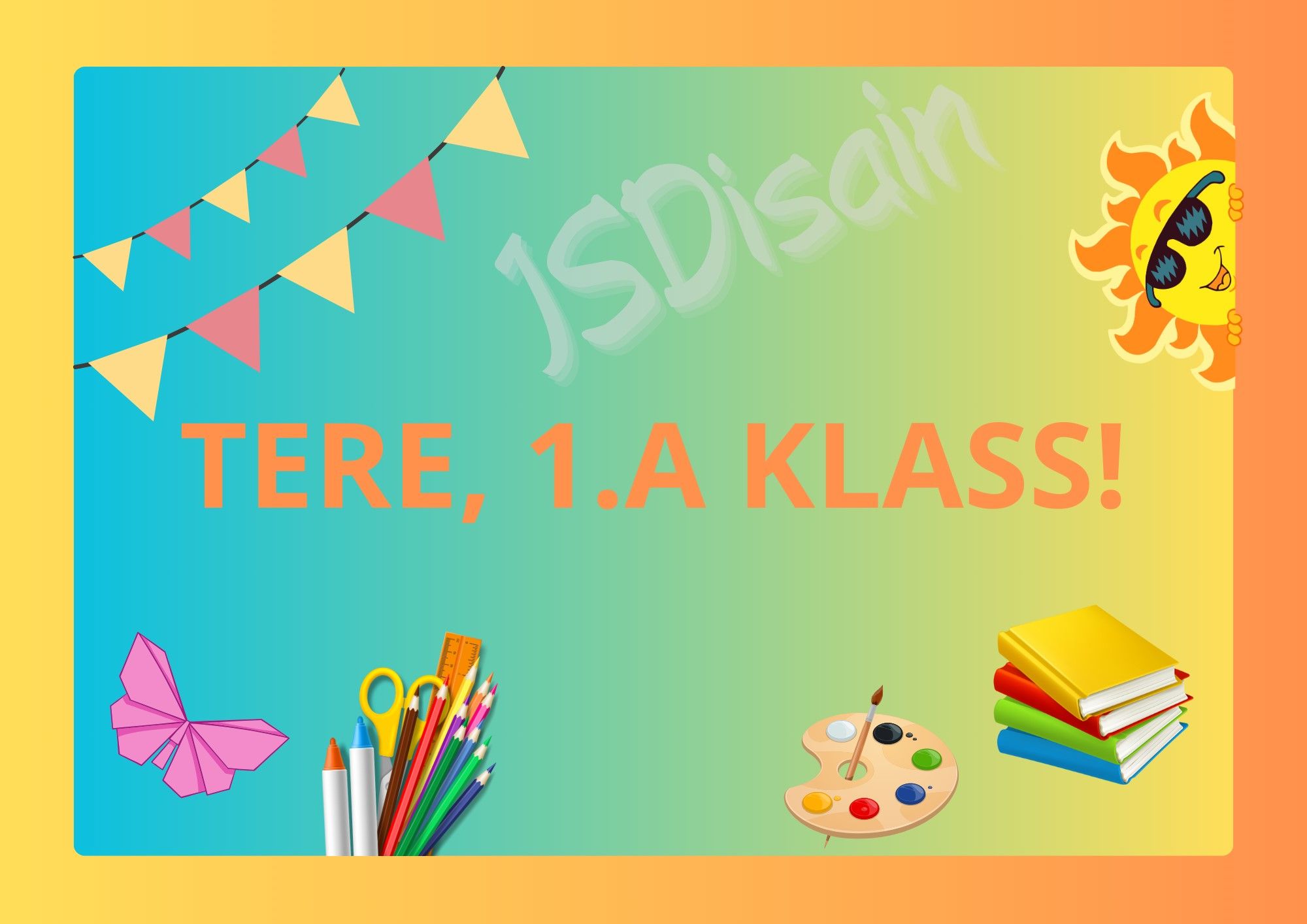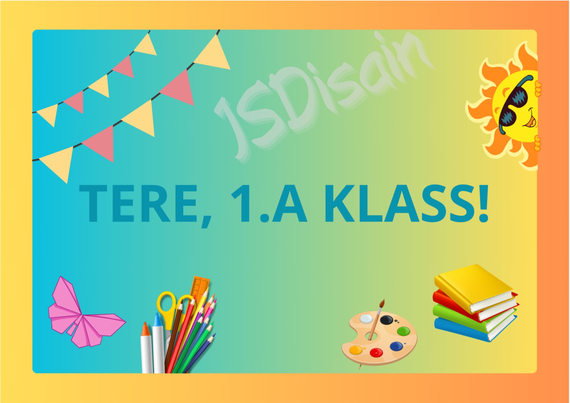A4 formaadis uksesilt kirjaga “TERE 1. A KLASS!”. Uksesilt tuleb Canva lingina (link pdf failis), mida saab ise muuta (n. klassi numbrit, tähte jne).