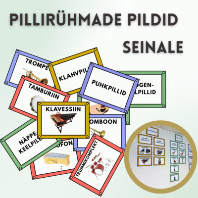 Kolm erinevat töölehte: puhkpillid, klahv- ja keelpillid ning löökpillid.