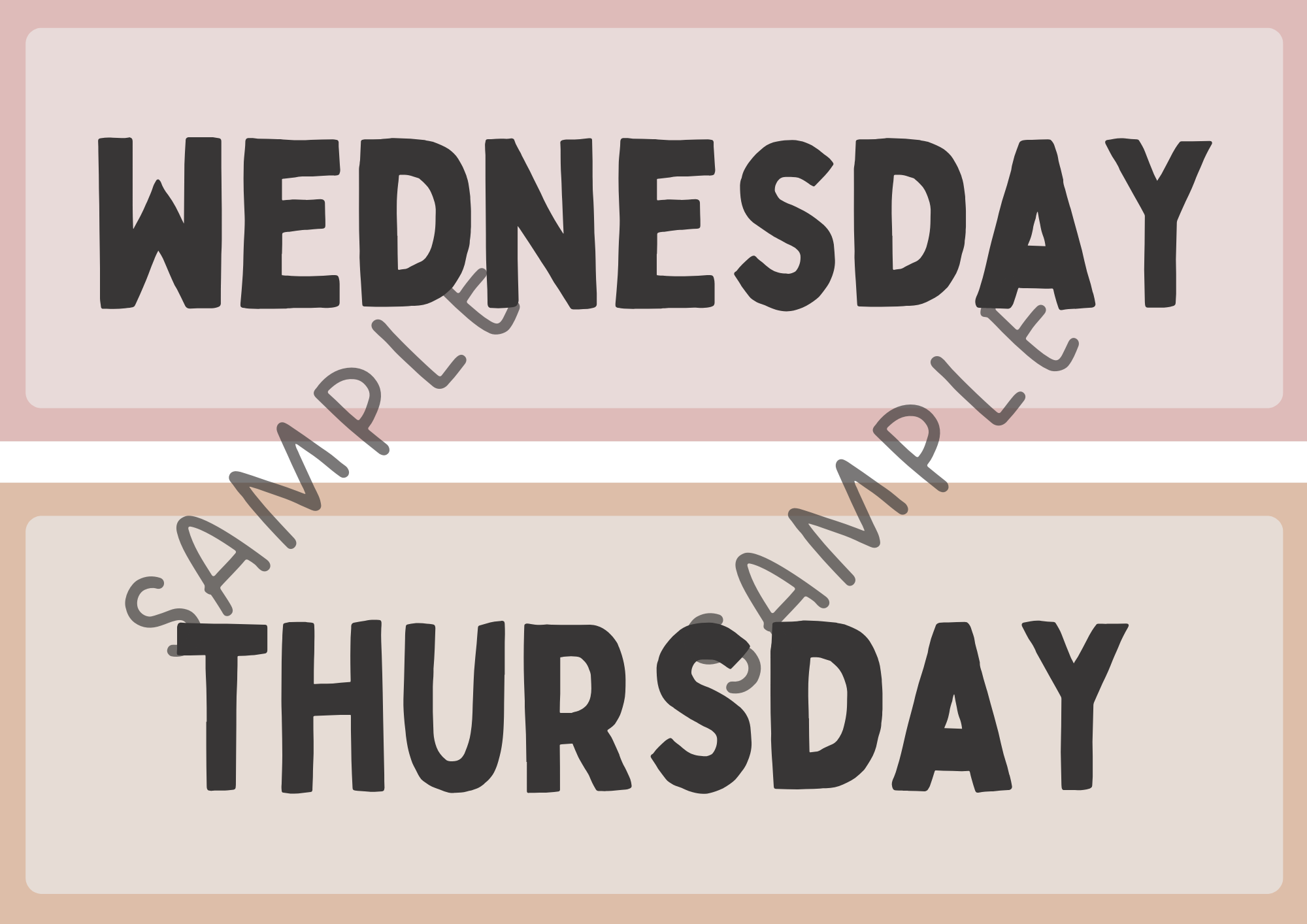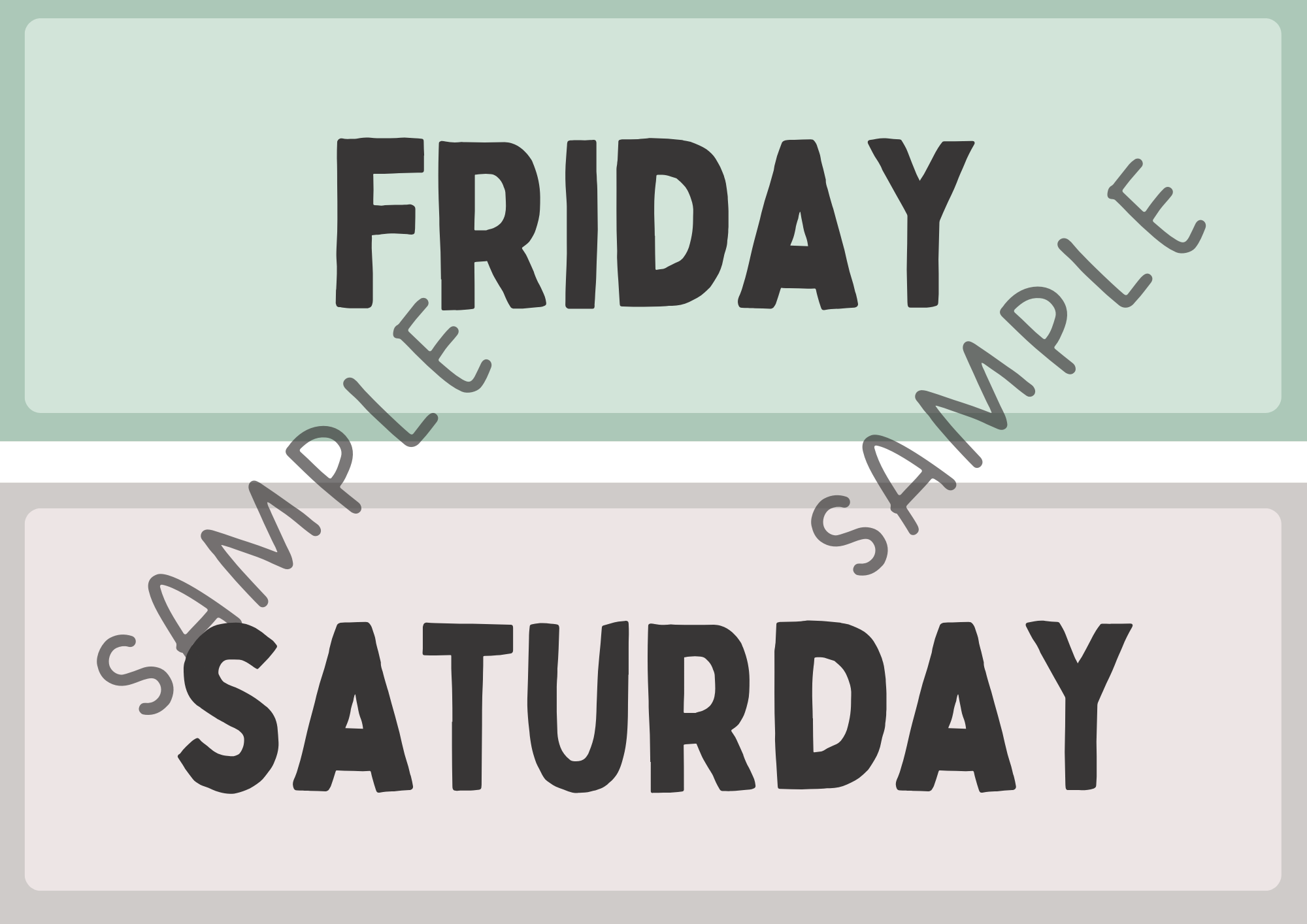 Nädalapäevade sildid inglise keeles. Õpetaja saab sildid lamineerida ja kinnitada tahvlile või klassi seinale.