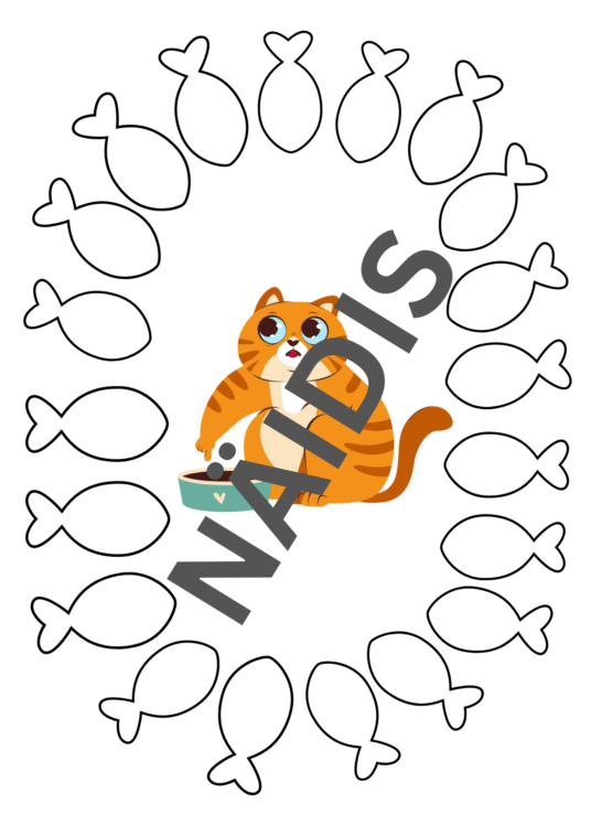 Mängualusel on näljane kass, kes ootab süüa – iga õigesti moodustatud lause või õigesti vastatud küsimuse korral värvib laps ühe kala ära.