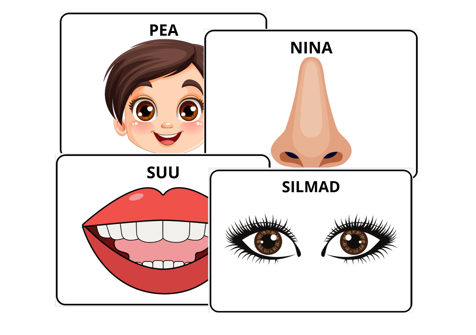 Näoosad – pea, juuksed, kõrvad, silmad, kulmud, nina, suu, hambad, huuled, keel