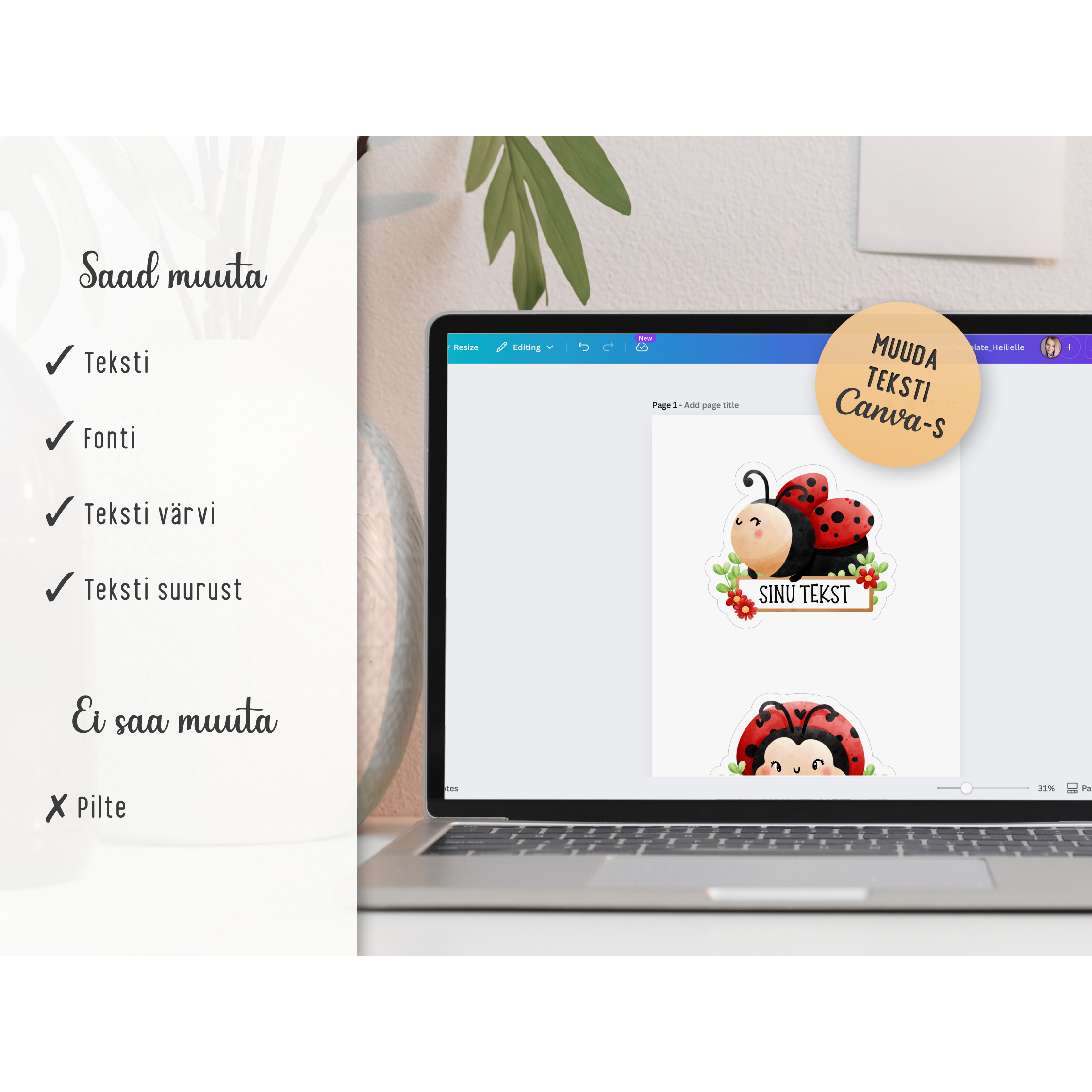 - Canva link teksti muutmiseks