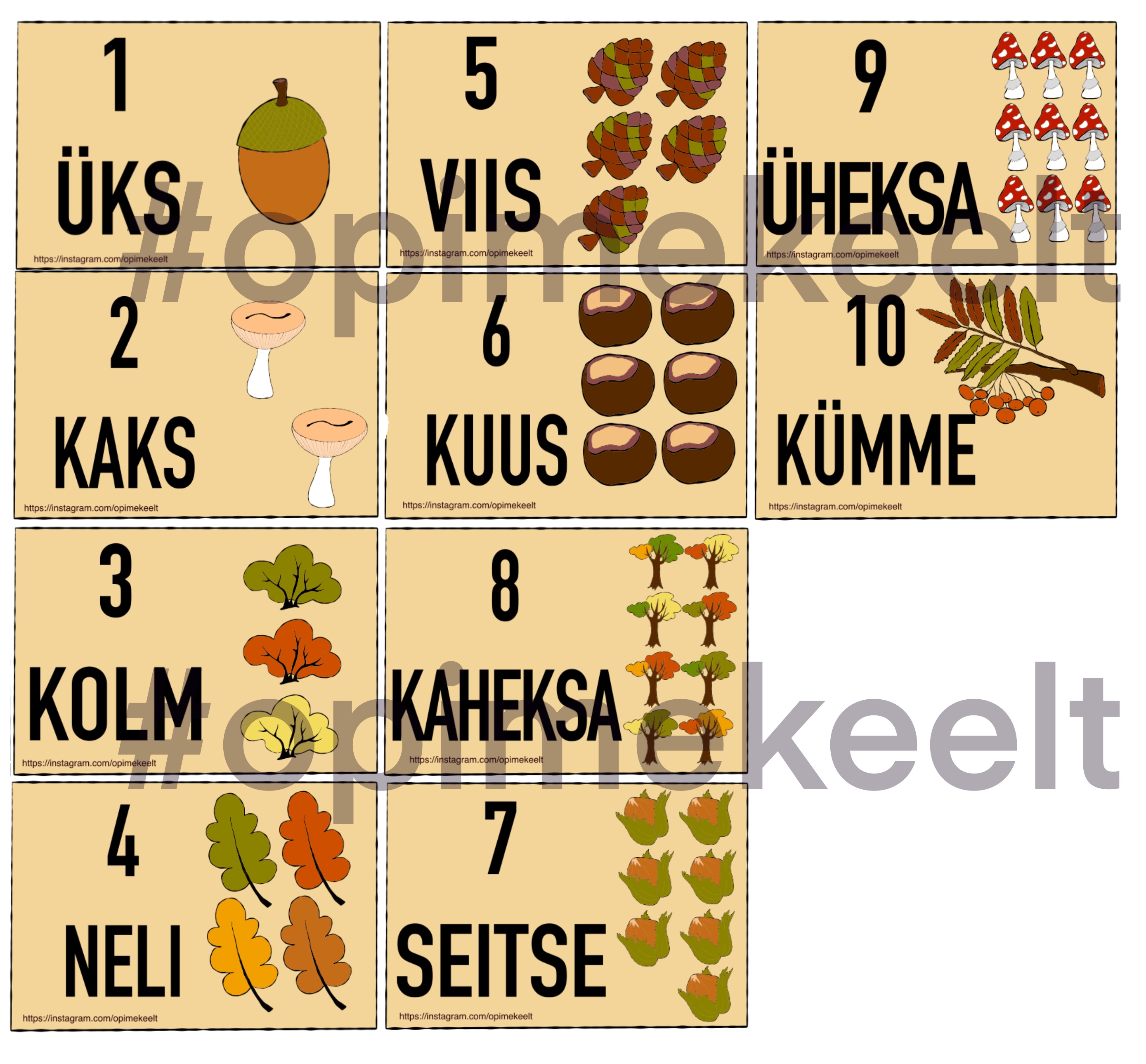 5 A4 pdf lehekülge. Igal lehel on kaks numbrit