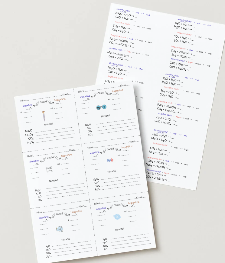 • oksiidide nimetamine (metallilised ja mittemetallilised),