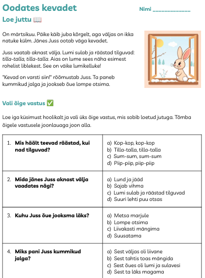 Loe. Vasta küsimustele.