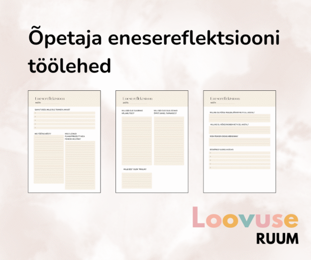 Enesereflektsiooni töölehed (PDF-fail 3 A4 leheküljega) sobivad nii lasteaia- kui kooliõpetajale (õppe)aastat kokkuvõtvaks eneseanalüüsiks. Hea kasutada ka enne arenguvestlust.