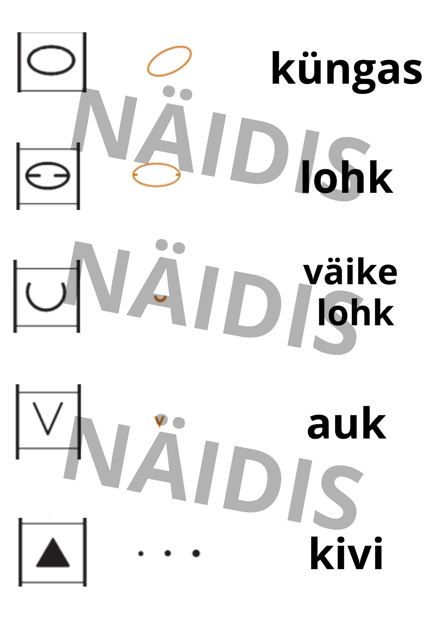 Fail sisaldab 6 lehte (30 leppemärgiga), mida on võimalik kasutada orienteerumise leppemärkide õppimisel/kordamisel. Nt memoriinina, “leia õige”, orienteerumise kontrollpunktis vmt.