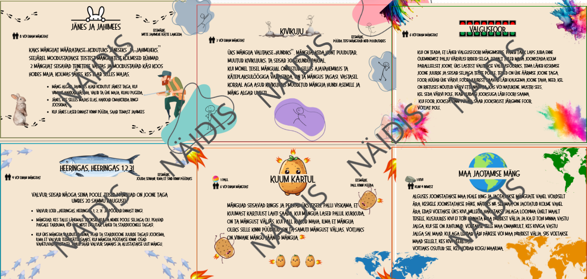 ✓ vanad tuntud mängud nagu valgusfoor, maa jaotamise mäng jms.