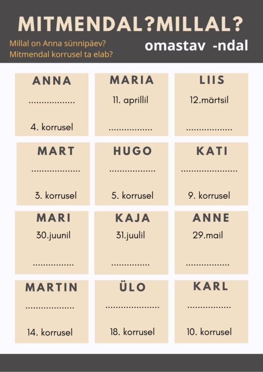 Paaris-mäng: “Millal? Mitmendal?” A2-B1