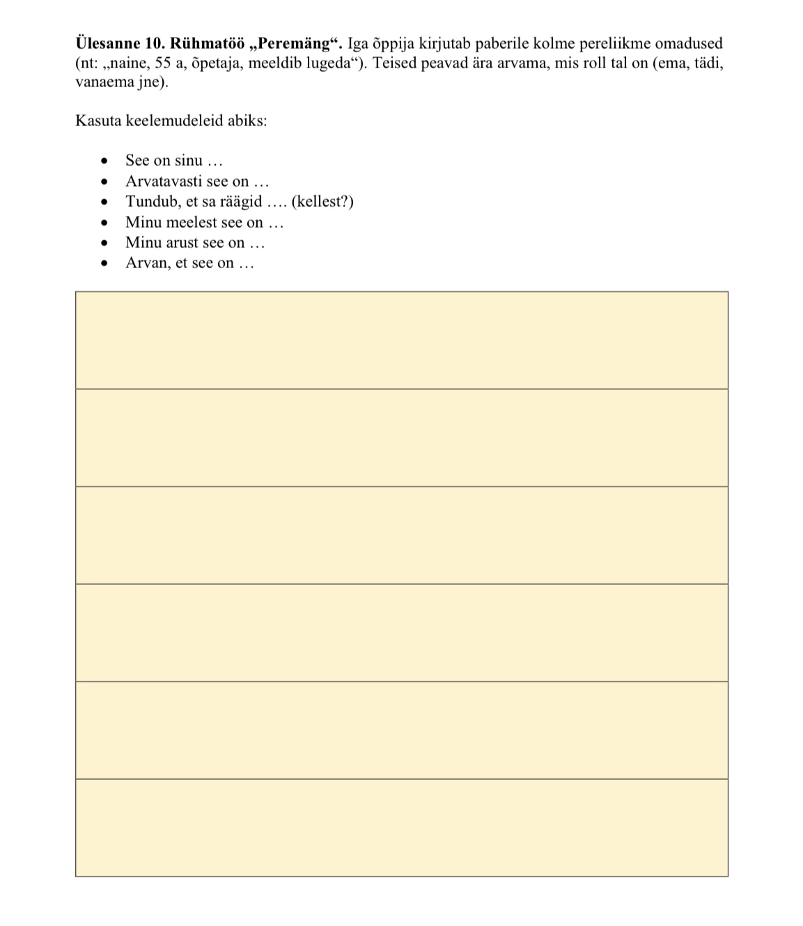 - Lühikest teemasisest sissejuhatust (kasulikud fraasid)