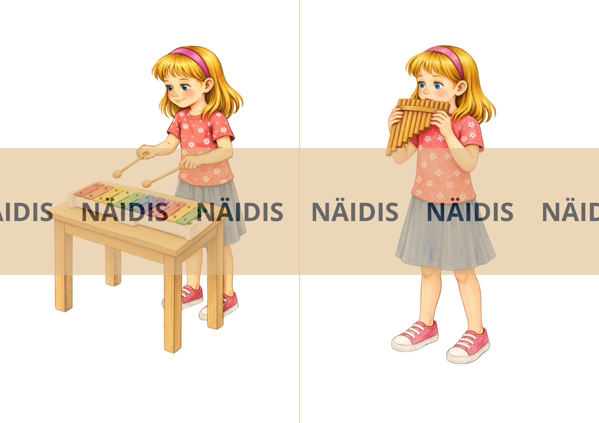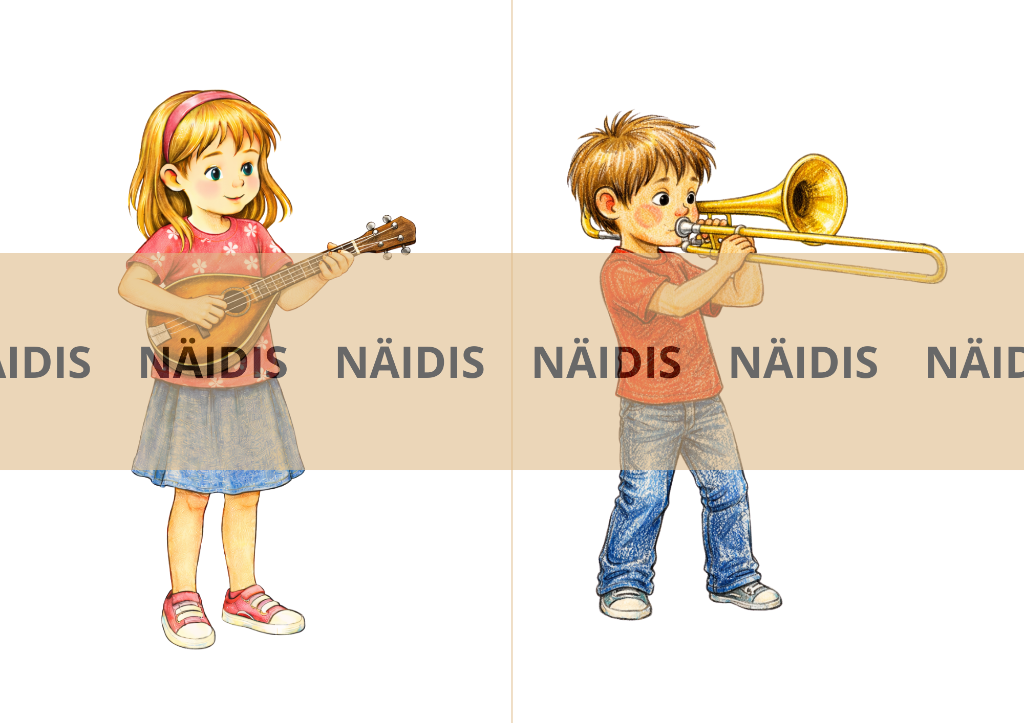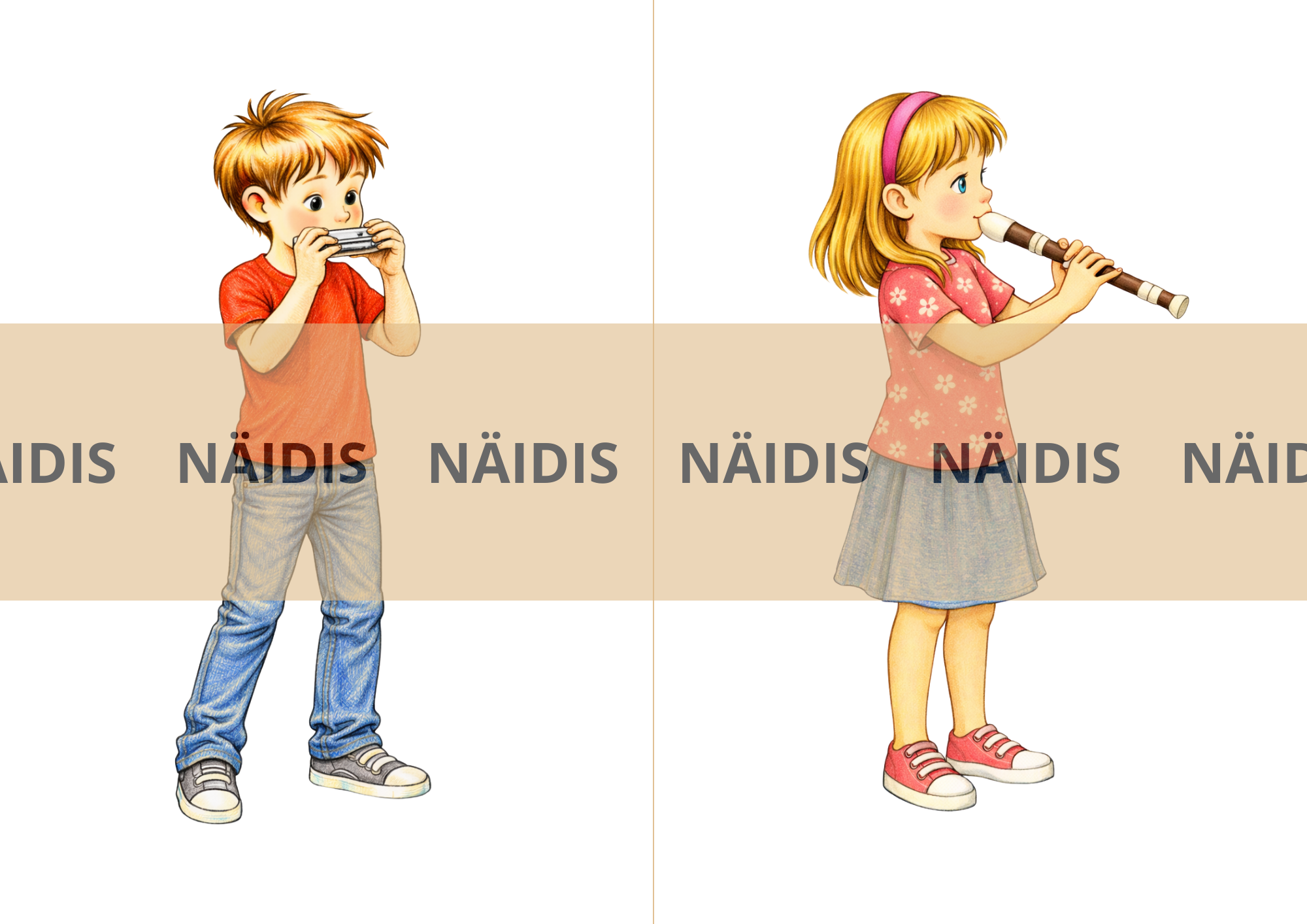 Ühel lehel on kaks pilti. Maksimaalne suurus ühe lehe printimisel A4. Kokku on piltidel 28 muusikainstrumenti.