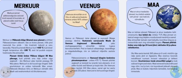 Kokku 8 planeeti, A4 ja A3 suurus.
