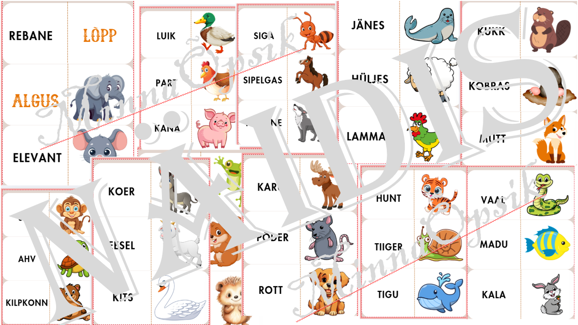 32 looma pildi ja sõnaga doominoklotsi 20x8cm.