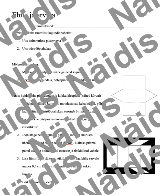 Rühmatööleht püstprisma ja rööptahuka õppimiseks.