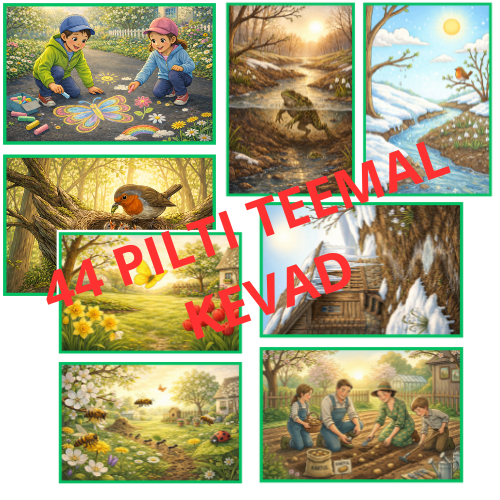 OLEMAS ON ERINEVAD LINNUD, LILLED, KEVADEGA SEOTUD TOIMINGUD JA TEGEVUSED, SAMUTI KEVADE TUNNUSED.
