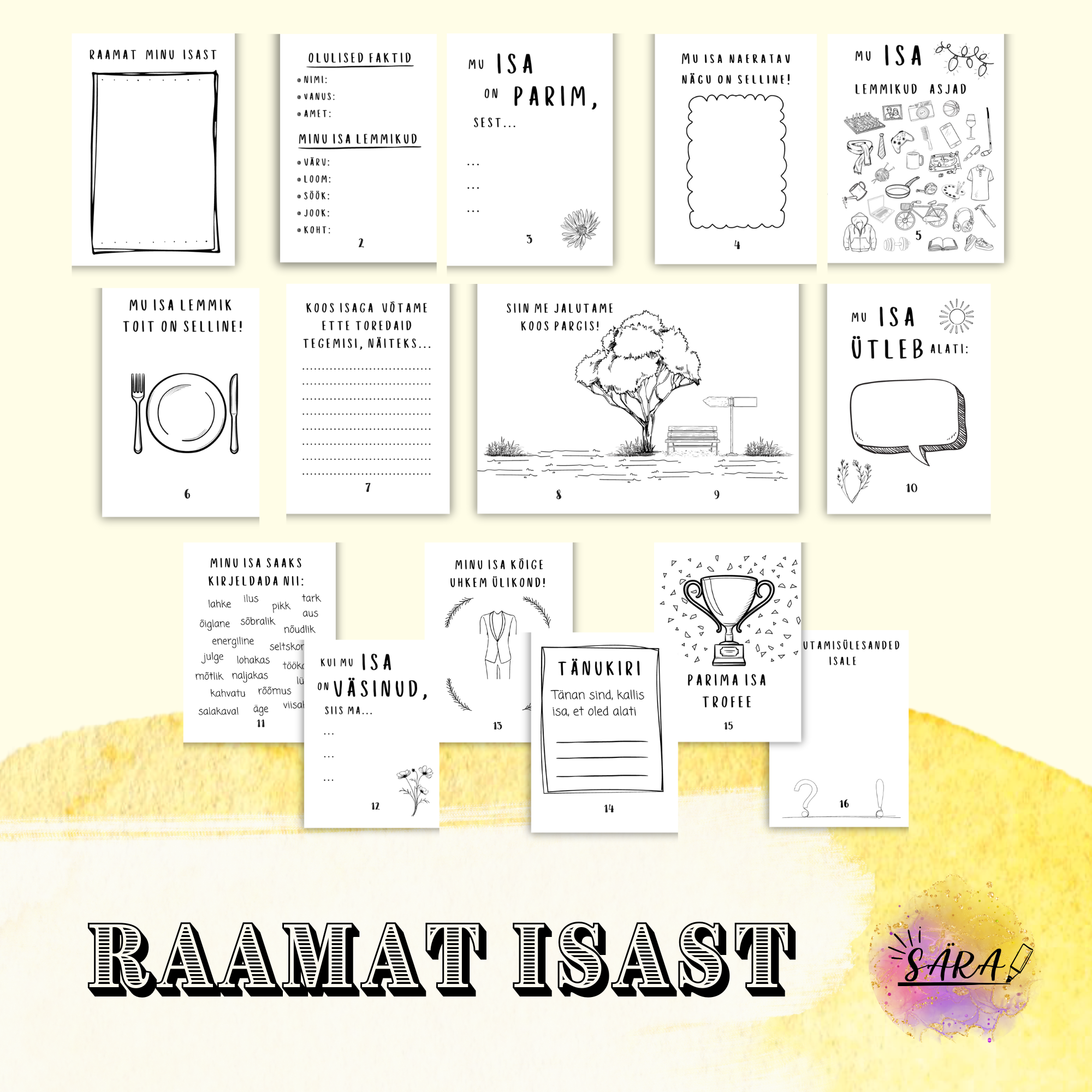 See väike raamat sisaldab endas nii kirjutamis- kui värvimis ülesandeid. Näiteks saab iga laps kirja panna, miks on tema isa parim, kirjutada talle tänukirja ja kaunistada trofee. Lisaks saab oma isa omadussõnadega iseloomustada, värvida isa lemmikasju, joonistada lemmiktoitu ja joonistada kõige uhkem ülikond. Raamatus on kokku 16 täidetavat lehekülge, mis on ära mahutatud 4-le A4 paberile.