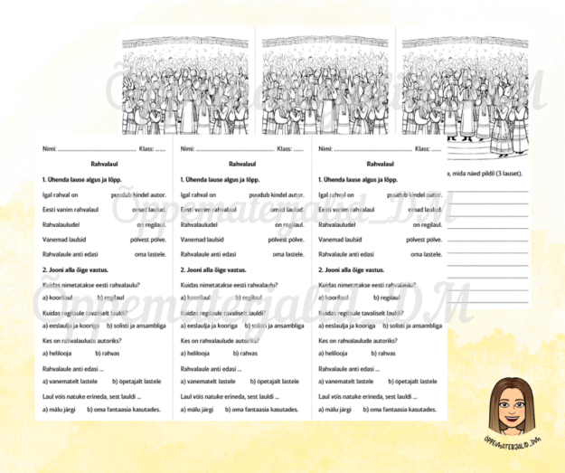 Väike tööleht (saab kasutada nagu tunnikontroll) teemal “Rahvalaul”. Sobib 2.klassi õpilastele.