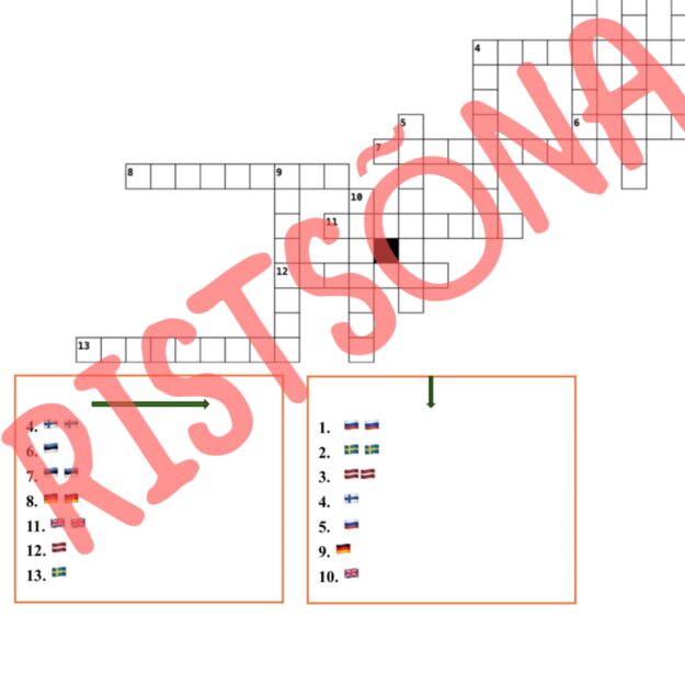 Ristsõna teemal „Rahvused ja lipud“. Üks lipp tähendab nt „soomlane“, kaks lippu aga „soomlased“. Sobib kordamiseks.