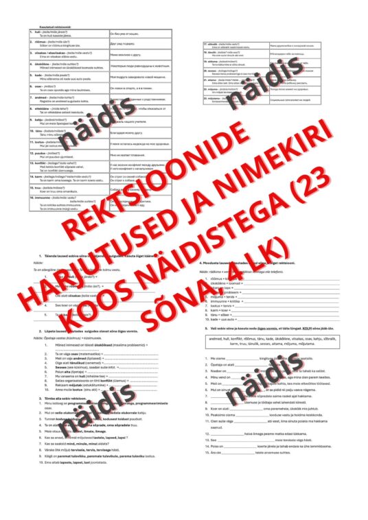 Töölehed sisaldavad 23 olulist eesti keele rektsiooni.