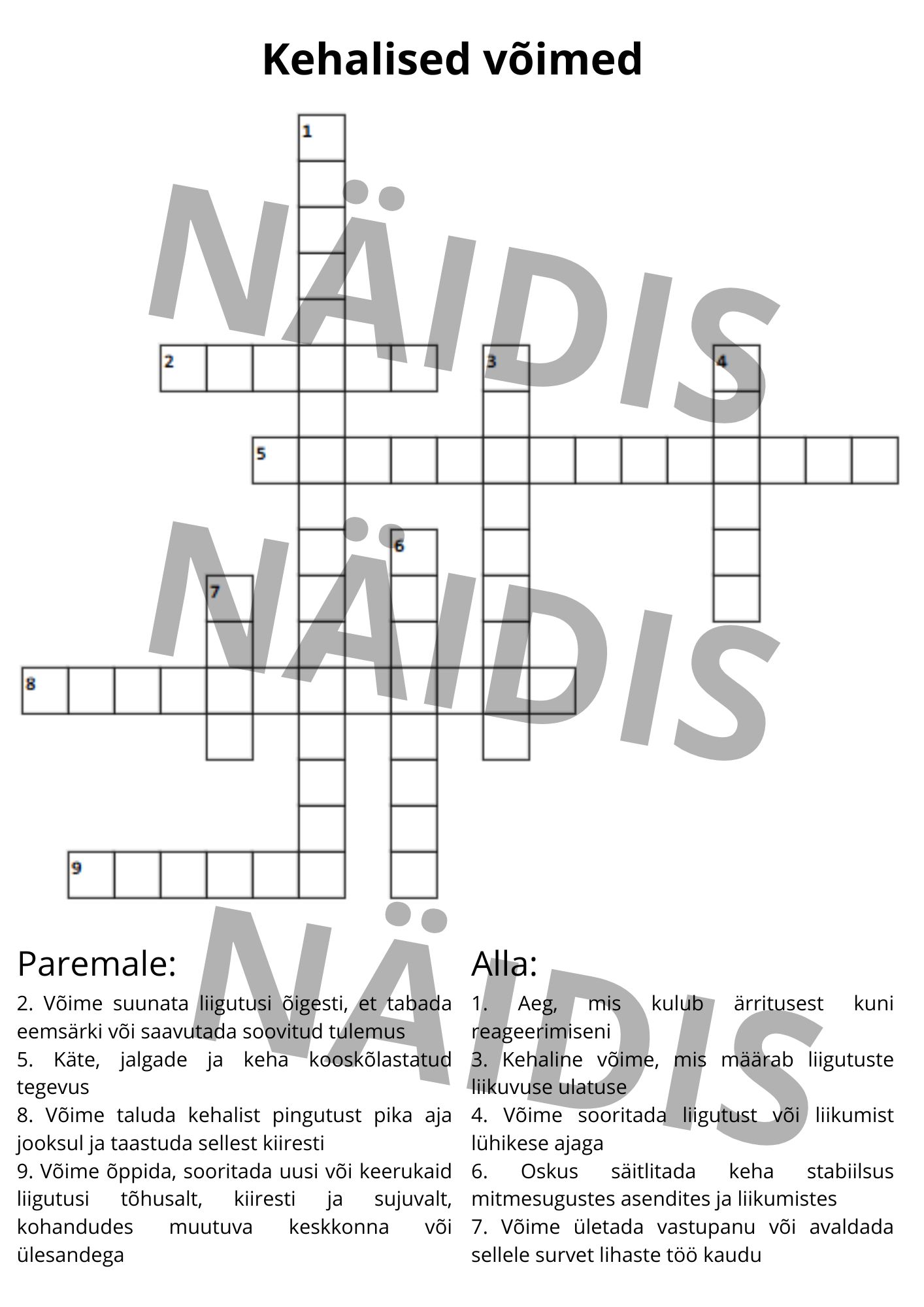 Ristsõna kehaliste võimete kohta tunni tegevustest vabastatud õpilasele, lisaülesandena vmt.