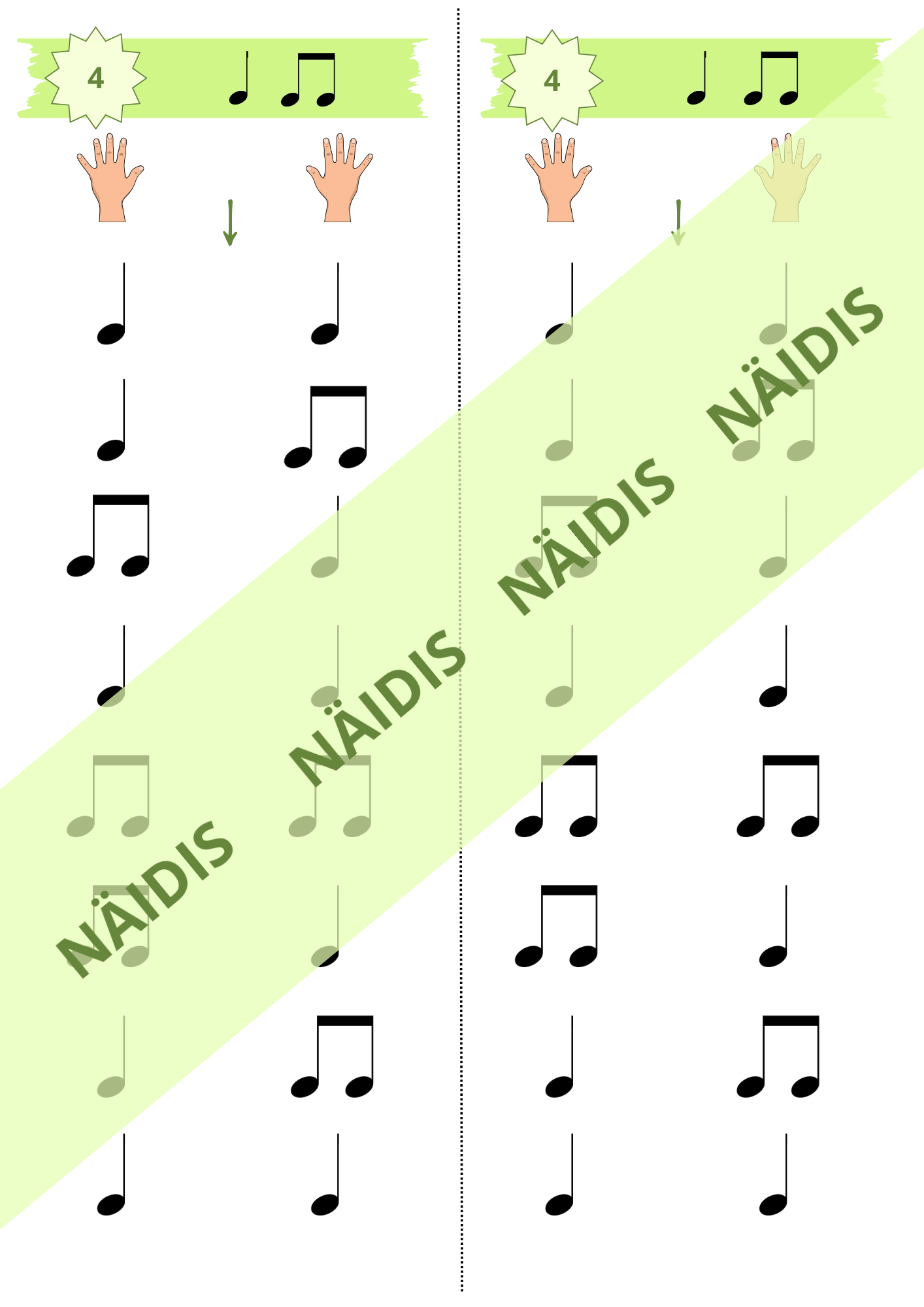 Harjutused kahele käele ta, ti-ti ja koordinatsiooni harjutamiseks.