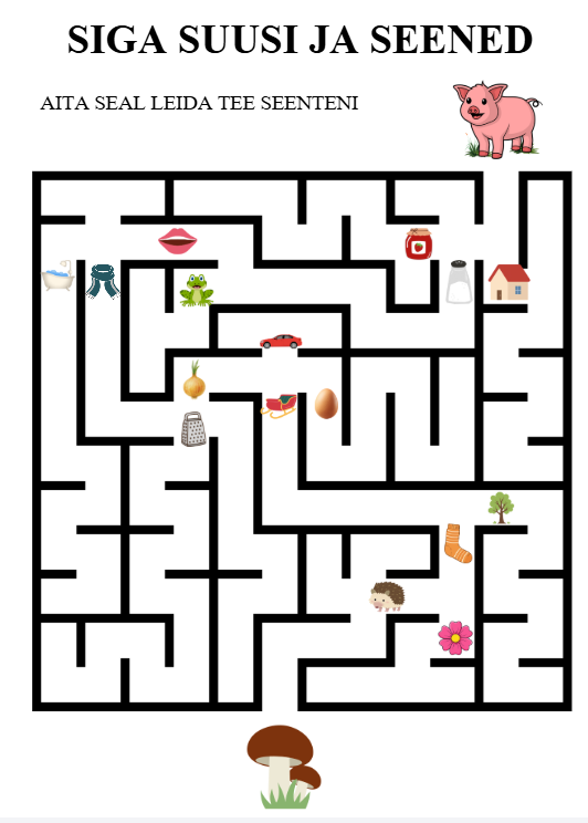 Mäng S-hääliku häälduse kinnistamiseks sõna alguses. Laps peab näpu või pliiatsiga labürindis liikuma mööda S-häälikuga algavaid sõnu ning neid nimetama. S-häälikut saab mänguga ka lauses harjutada, nt “Siga Suusi sai soola; Siga Suusi sai sibula” jne.