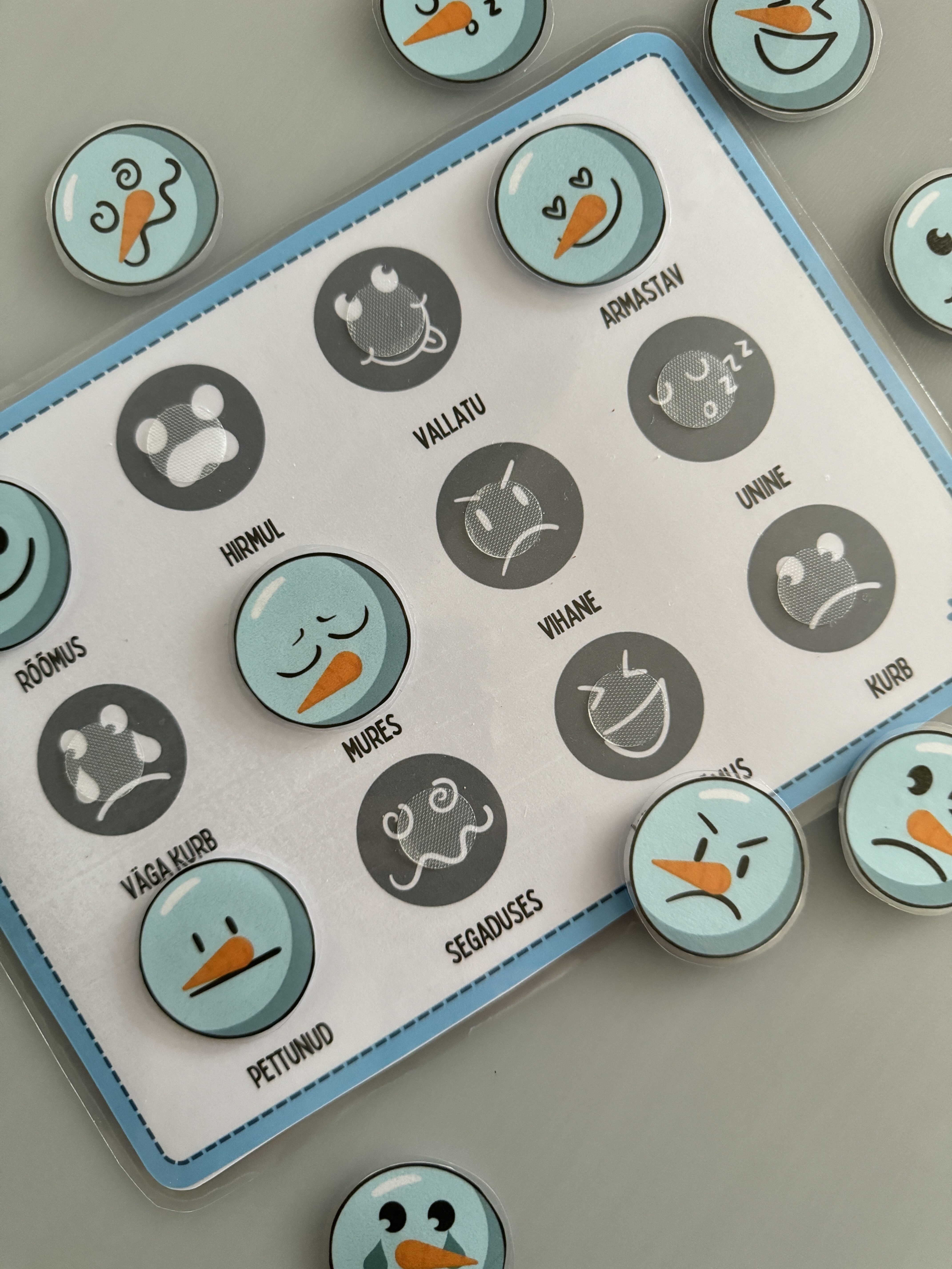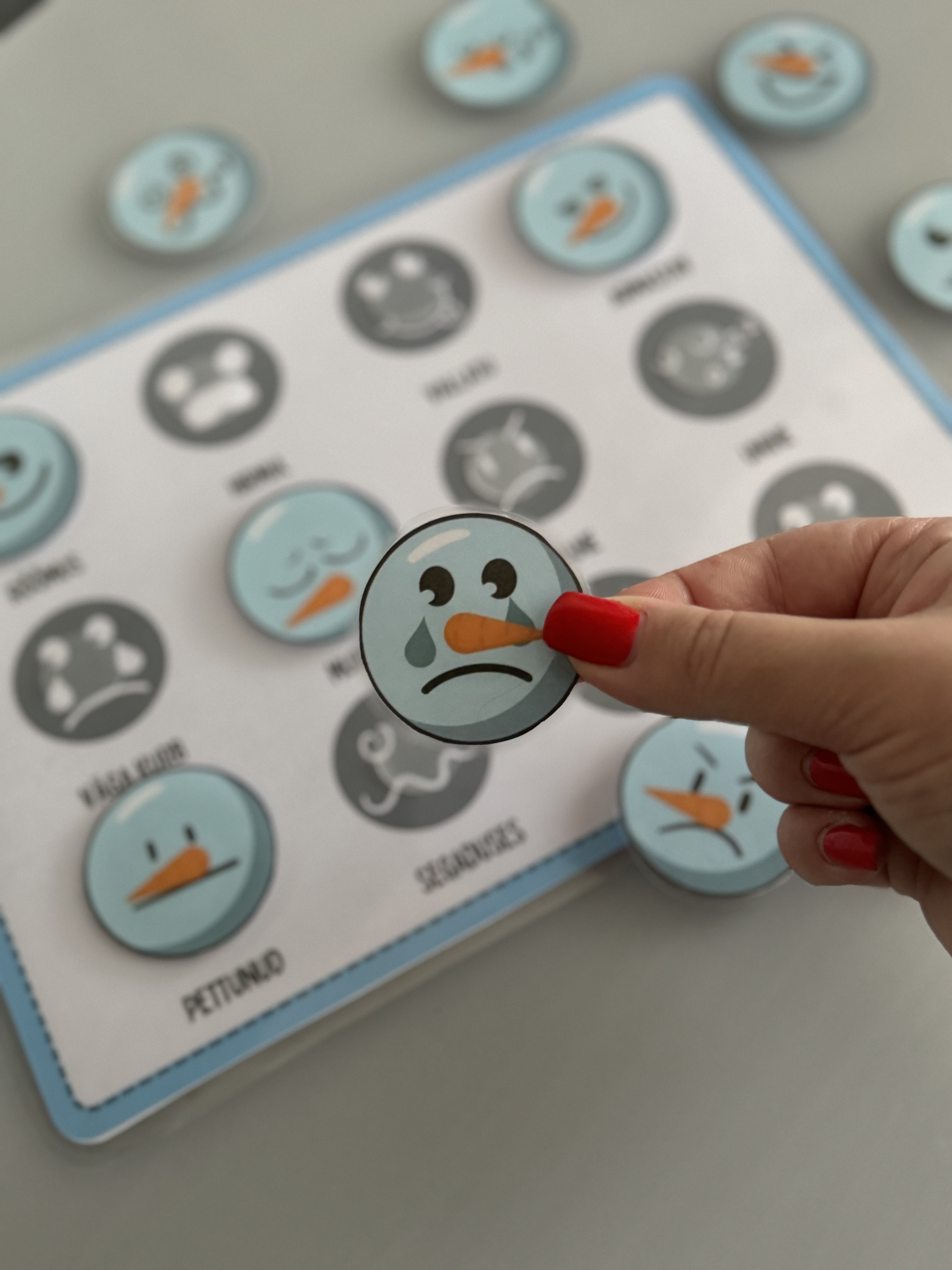 Lõbus ja arendav talveteemaline emotsioonide õppemäng, mis aitab lastel oma tundeid märgata, sõnastada ja paremini mõista. Komplektis on mängualus ja lumememme näopildid erinevate emotsioonidega. Sobib kasutamiseks kodus, lasteaias või teraapias. Vahva mäng, mida saab kasutada nii õppetegevuses kui ka anda lastele vabal ajal iseseisvaks mänguks. Mäng toetab emotsioonide regulatsiooni, sõnavara arengut ja suhtlemisoskust. Ideaalne vahend igapäevaseks „Kuidas ma end tunnen?“ aruteluks.