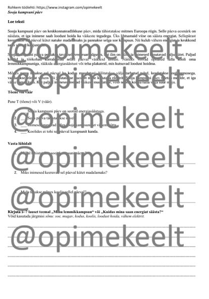 Lugemine, lugemiskontroll ja kirjutamine. Sobilik keeleõppeks. 1 lk