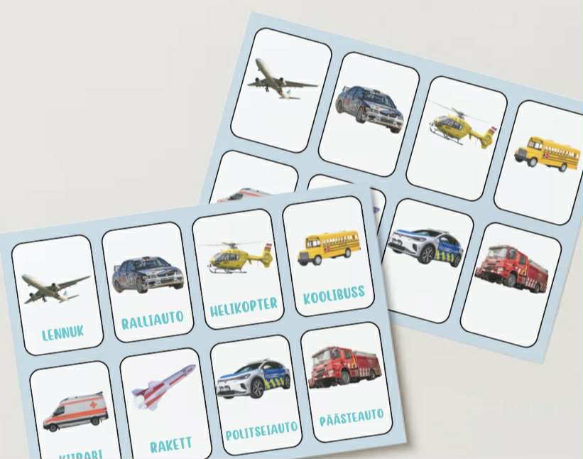Realistlike piltidega kaardid, mida saab kasutada nii mänguks kui õppetegevuseks.Kokku 7 lh.