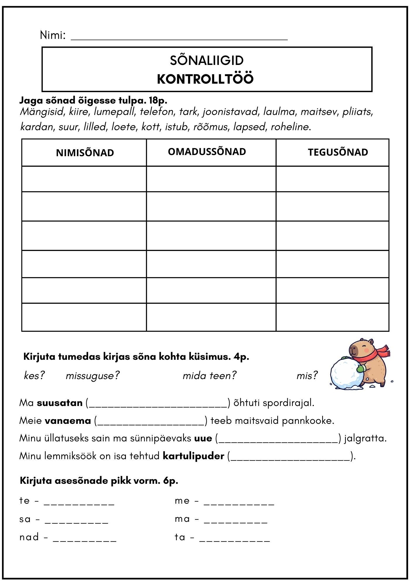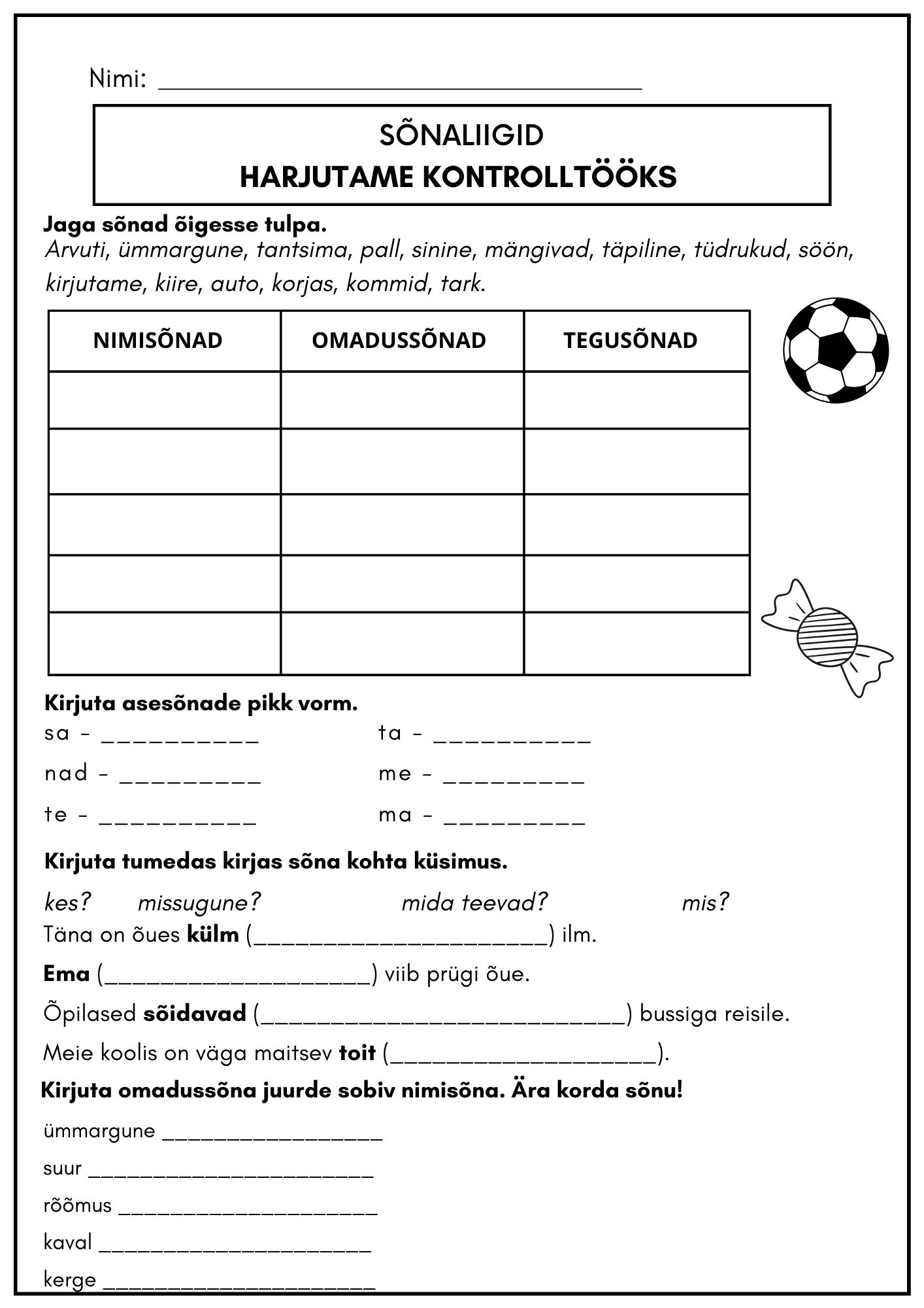 Tööleht kinnistamiseks ja kontrolltöö teamiste kontrollimiseks.