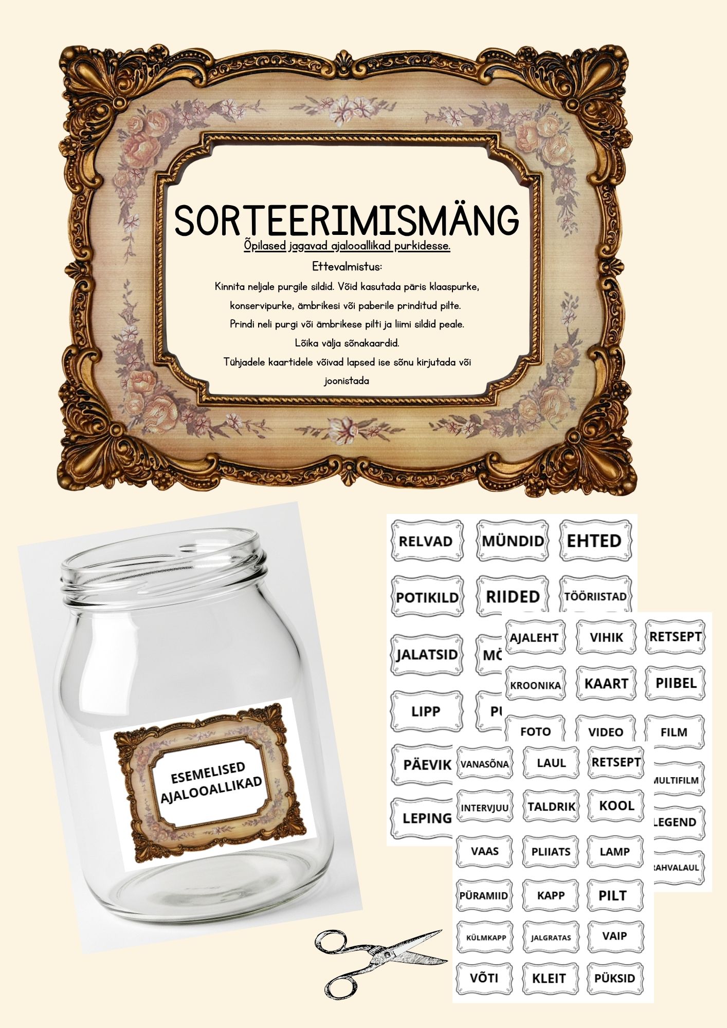 Sõnavara mäng. Sorteeri sõnad_Teema: Ajalooallikad_54 sõnakaarti, mängu alused