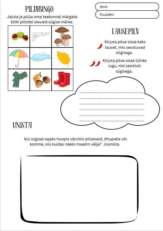 - ülesannet leida ja märgistada oma jalutuskäigul nähtud sügise märgid