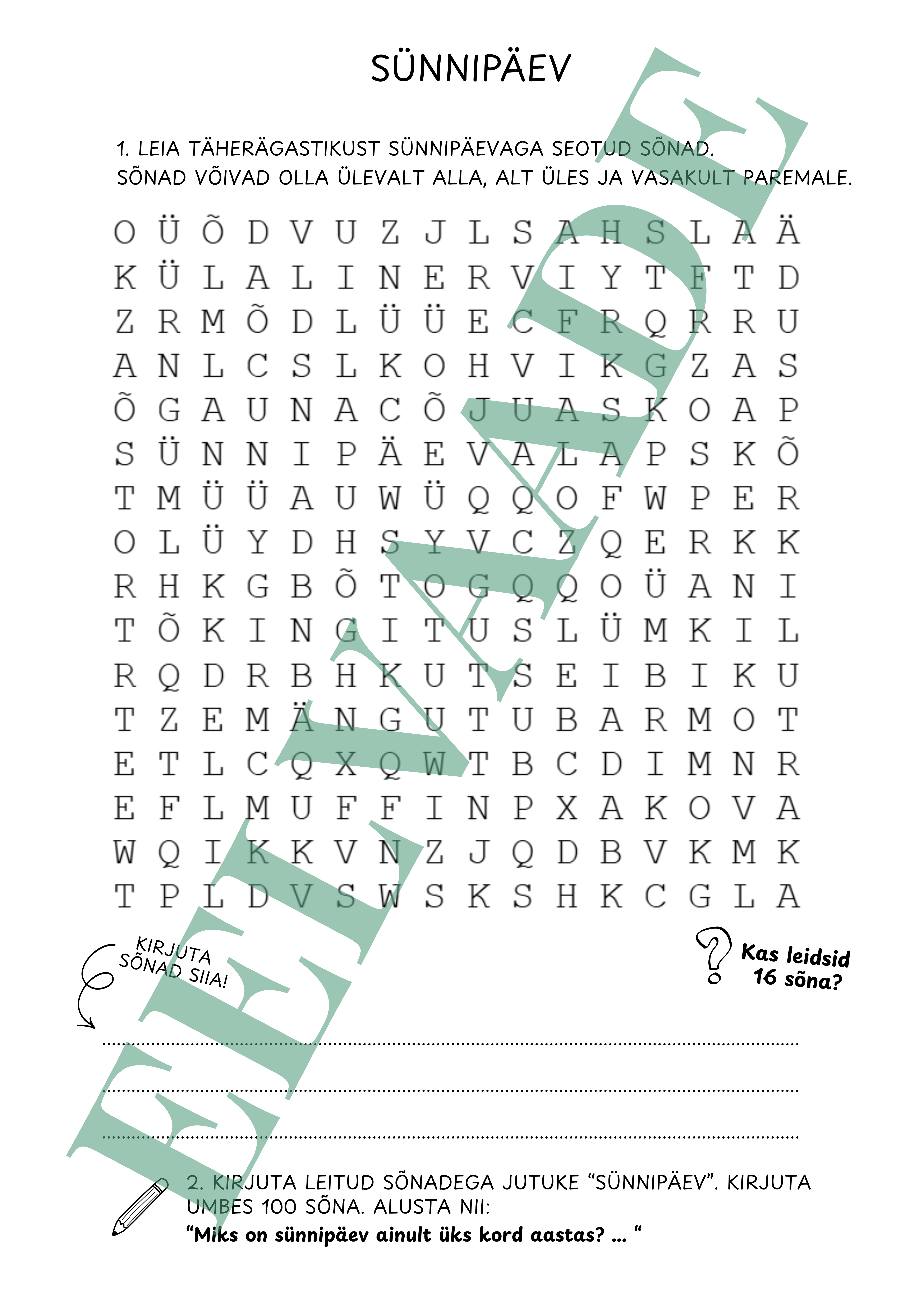 “SÜNNIPÄEV – täherägastik ja kirjutamisülesanne”