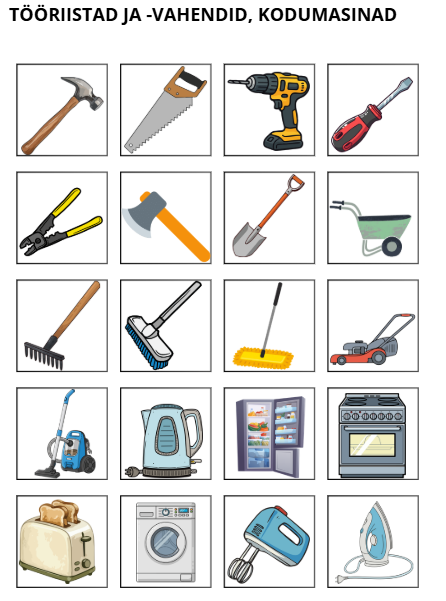 - mõtlemisoskust (ühte hulka kuuluvate objektide rühmitamine) ja 2. astme üldnimetuste kasutamist- (nt riided, puuviljad, mööbel, tööriistad).