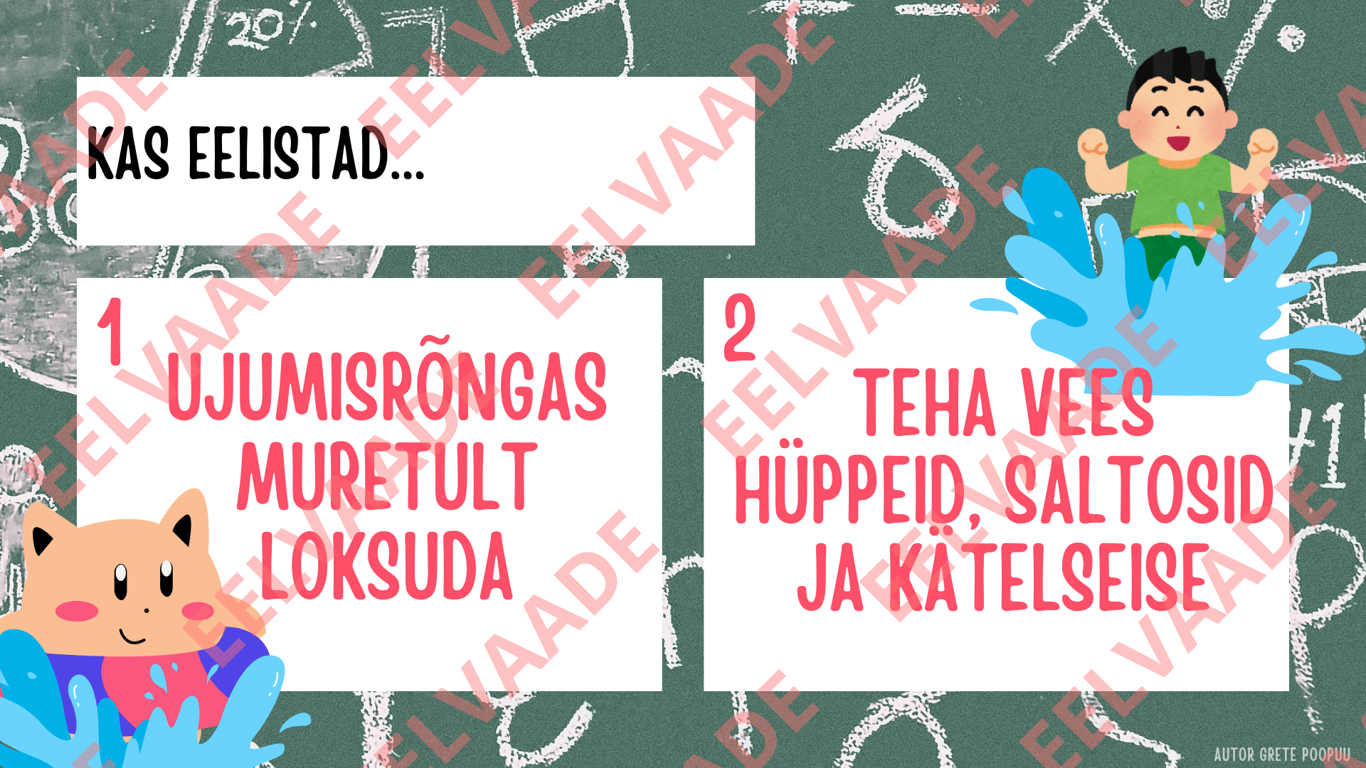 Mäng koosneb kümnest “Kas eelistad…” küsimusest ning igal küsimusel on kaks valikut, mille vahel lapsed valida saavad. Õpetaja määrab mõlema vastuse numbrile klassis oma ala, kuhu lapsed liiguvad kui selle vastuse valivad. Lapsed jätavad mängu käigus meelde, kas valisid rohkem nr 1 või 2 vastuseid ning selle järgi saavad viimasel slaidil teada, millised puhkajad nad on.