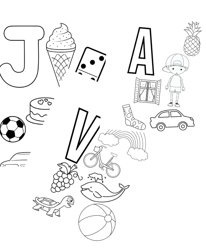 Igal lehel on täht värvimiseks ja 5-6 pilti. Laps teeb häälimise teel selgeks, millised pildid algavad vastava tähega ja värvib need.