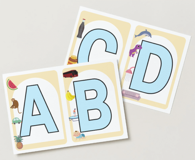 Tähekaardid, mille iga tähe juurde on lisatud 2-4 pilti. NB! puuduvad Š, Z ja Ž tähed.